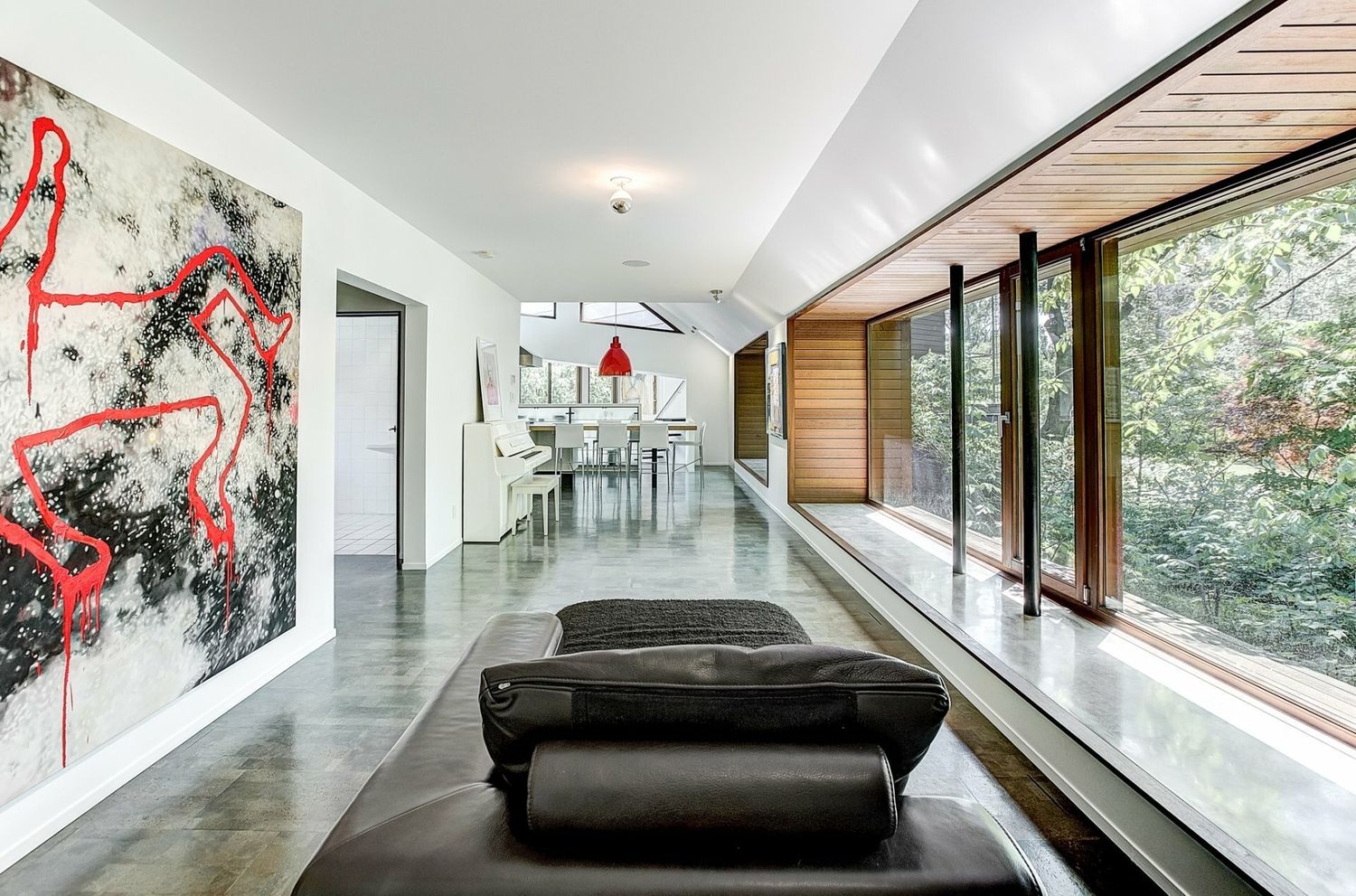 Une famille recomposée de 5 enfants dont les parents prévoient l’arrivée d’un 6e, un couple travaillant à mi-temps de la maison, un secteur animé d’une vie sociale tranquille et douce sont les prémices pour un projet de transformation et d’agrandissement de la petite maison entourée de ses arbres centenaires. Un nouveau volume de faible projection au sol se raccorde à l’existant qu’on a voulu conserver afin de minimiser l’empreinte carbone. Sa fenestration double hauteur laisser pénétrer la lumière du matin jusqu’au cœur de la maison existante, la cuisine familiale. Et pour rompre avec cette dualité extérieur-intérieur à laquelle nous confinent ces bâtiments hermétiques, les espaces intérieurs s’ouvrent jusqu’à créer des entre-deux et permettent cette souple transition des espaces communs vers l’extérieur. Les entre-deux nous protège des aléas climatiques mais nous permettent aussi de nous relier au Monde. Ce travail sur les transitions est renforcé par l’usage des revêtements en bois qui renforce cette liaison avec la nature environnante.