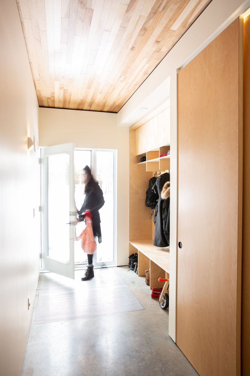 L'Atelier Diligent, c'est le rêve d'un retour aux sources pour une jeune famille de Montréal. Une maison saine, connectée à la nature pour se poser. Le long corridor de l'entrée offre un contraste avec une aire de vie majestueuse, mettant en valeur une vue sur l'environnement à 180 degrés. La maison principale comporte quatre chambres, deux salles de bains et une salle d'eau, ainsi qu'un bureau à aire ouverte. De plus, elle inclus un espace d'hébergement (B&B) de style loft pour partager leur coin de paradis avec les passants. De généreux espaces extérieurs couverts permettent de profiter de la vie dehors. Le tout est enrichit par leur vision de bâtir un écosystème, d'ajouter des jardins de permaculture, une fermette... ça donne envie de s'y évader pour toujours!