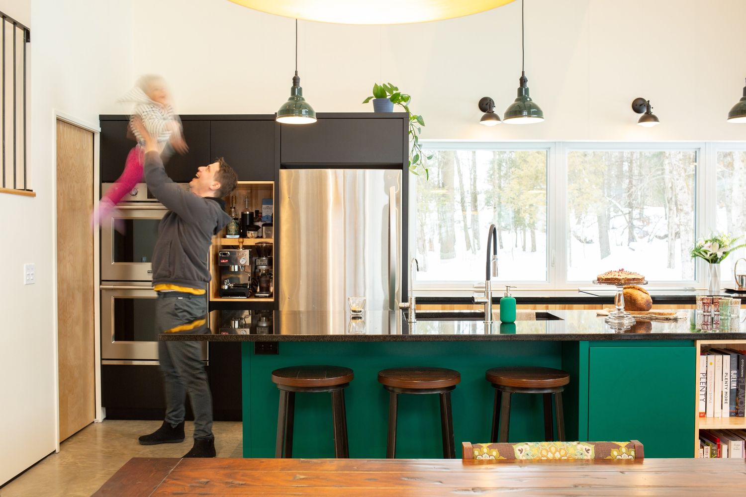 L'Atelier Diligent, c'est le rêve d'un retour aux sources pour une jeune famille de Montréal. Une maison saine, connectée à la nature pour se poser. Le long corridor de l'entrée offre un contraste avec une aire de vie majestueuse, mettant en valeur une vue sur l'environnement à 180 degrés. La maison principale comporte quatre chambres, deux salles de bains et une salle d'eau, ainsi qu'un bureau à aire ouverte. De plus, elle inclus un espace d'hébergement (B&B) de style loft pour partager leur coin de paradis avec les passants. De généreux espaces extérieurs couverts permettent de profiter de la vie dehors. Le tout est enrichit par leur vision de bâtir un écosystème, d'ajouter des jardins de permaculture, une fermette... ça donne envie de s'y évader pour toujours!