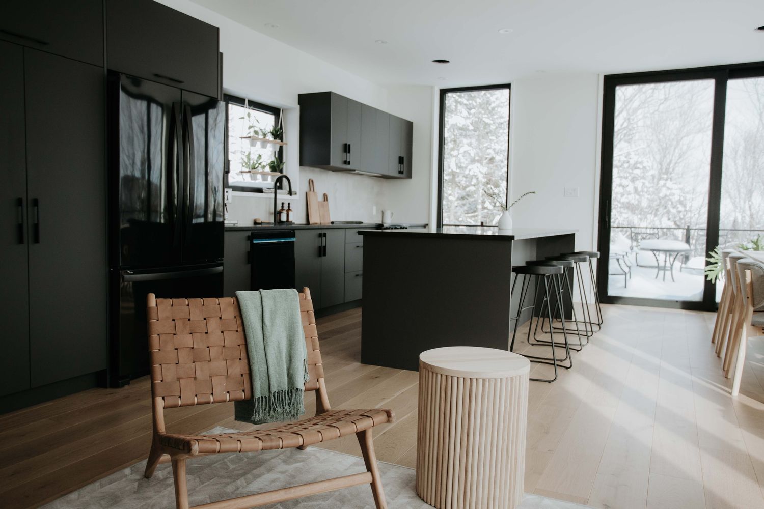 Maison au coeur de la forêt nichée sur le haut d'une montagne à Sainte-Agathe des Monts. La fenestration pleine hauteur qui met en valeur le paysage incroyable de la région est à couper le souffle.