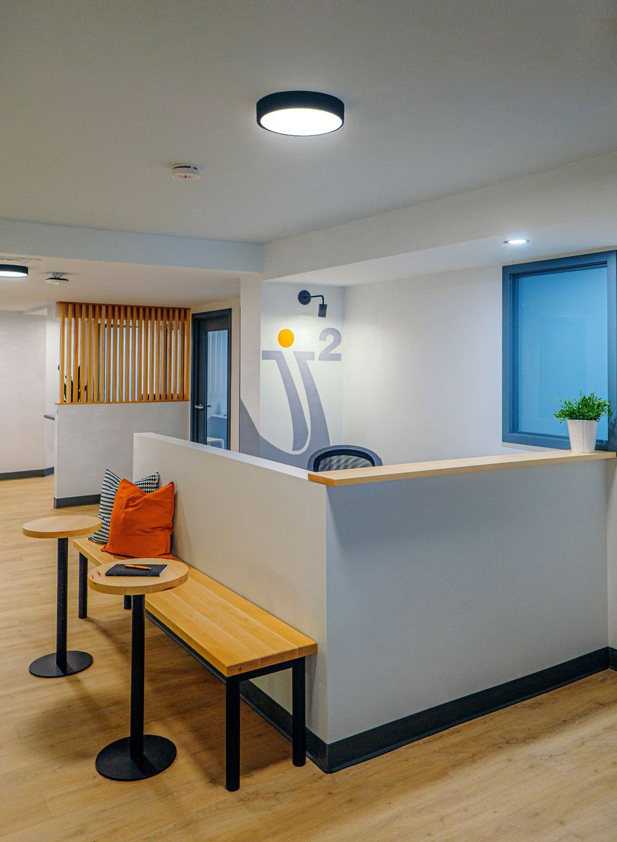 Nous avons travaillé d’arrache-pied pour intégrer le plafond existant aux multiples hauteurs, en plus de faire des interventions ciblées pour amener la lumière au coeur de l’espace. Le résultat est une représentation visuelle et vivante des valeurs de l’entreprise: plaisir, adaptabilité et collaboration.
