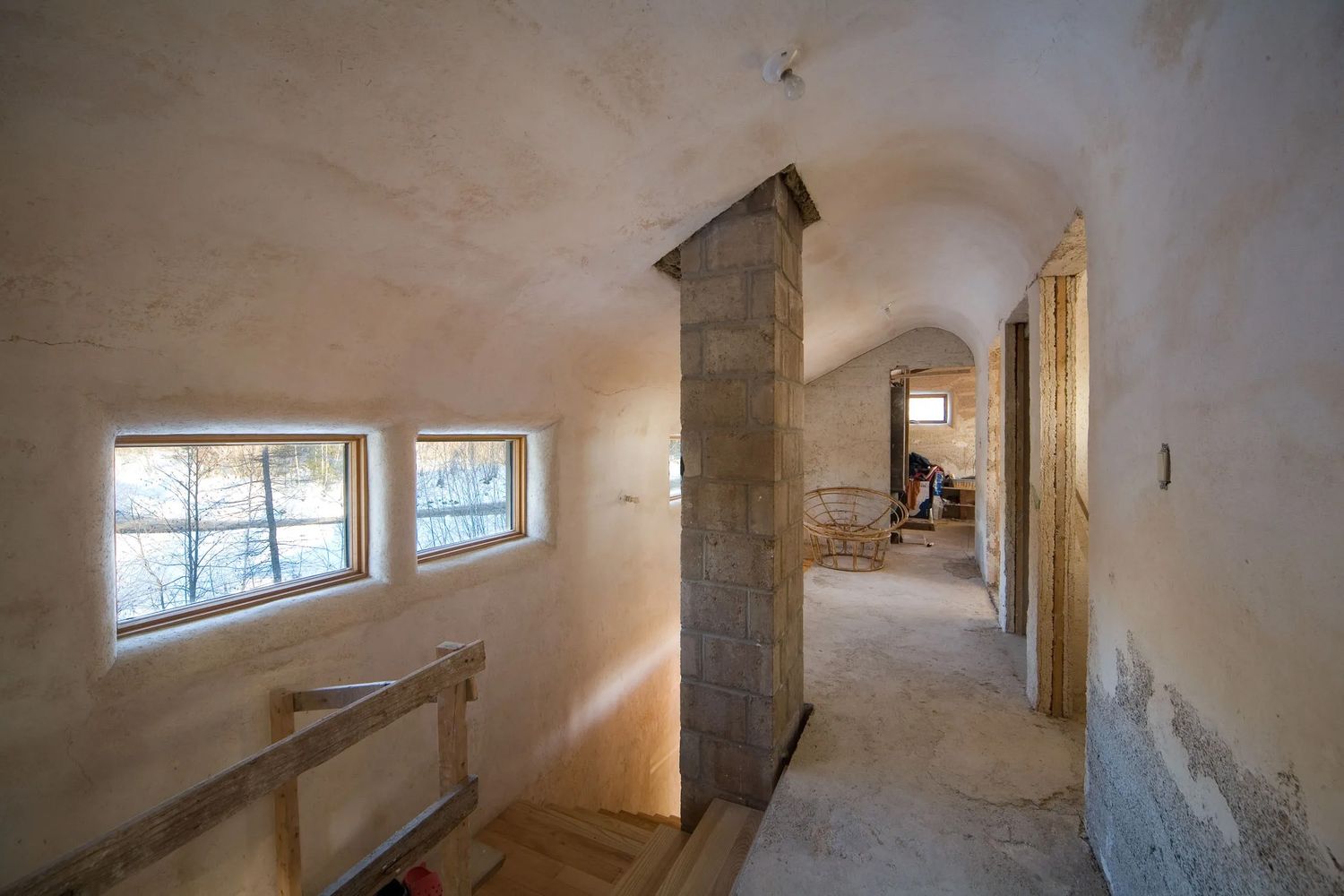 Première résidence construite entièrement en chanvre en Amérique, cette maison écologique des Cantons de l’Est loge plus de 2 000 pieds carrés. Son cœur abrite un foyer de masse couvert de terre crue autour duquel un escalier de bois grimpe vers les trois chambres. Les architectes ont retenu les stratégies suivantes afin de réduire l’impact du projet sur l’environnement : isolation continue en chanvre, fondations peu profondes, dalle radiante, chauffage solaire passif, toilette à composter et récupération des eaux de pluie.