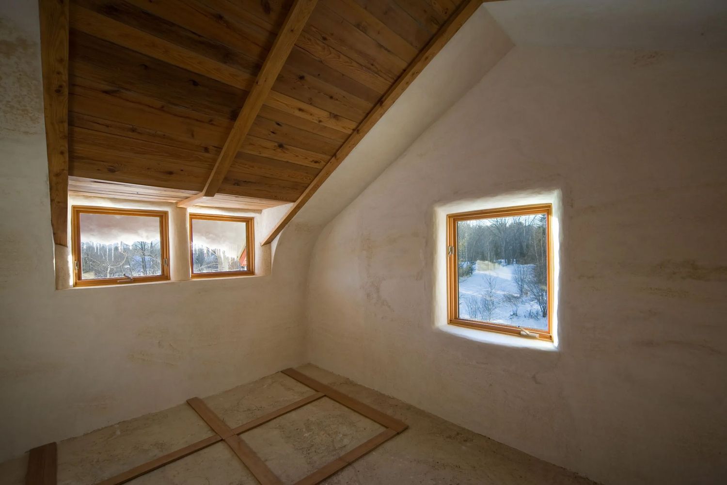 Première résidence construite entièrement en chanvre en Amérique, cette maison écologique des Cantons de l’Est loge plus de 2 000 pieds carrés. Son cœur abrite un foyer de masse couvert de terre crue autour duquel un escalier de bois grimpe vers les trois chambres. Les architectes ont retenu les stratégies suivantes afin de réduire l’impact du projet sur l’environnement : isolation continue en chanvre, fondations peu profondes, dalle radiante, chauffage solaire passif, toilette à composter et récupération des eaux de pluie.