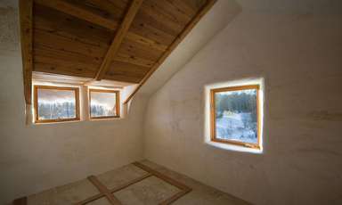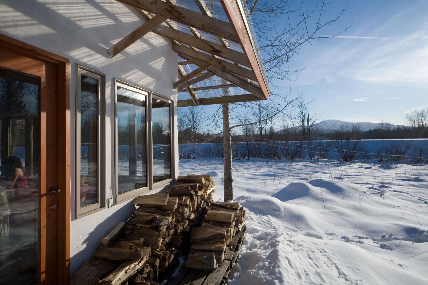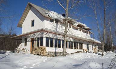 Première résidence construite entièrement en chanvre en Amérique, cette maison écologique des Cantons de l’Est loge plus de 2 000 pieds carrés. Son cœur abrite un foyer de masse couvert de terre crue autour duquel un escalier de bois grimpe vers les trois chambres. Les architectes ont retenu les stratégies suivantes afin de réduire l’impact du projet sur l’environnement : isolation continue en chanvre, fondations peu profondes, dalle radiante, chauffage solaire passif, toilette à composter et récupération des eaux de pluie.