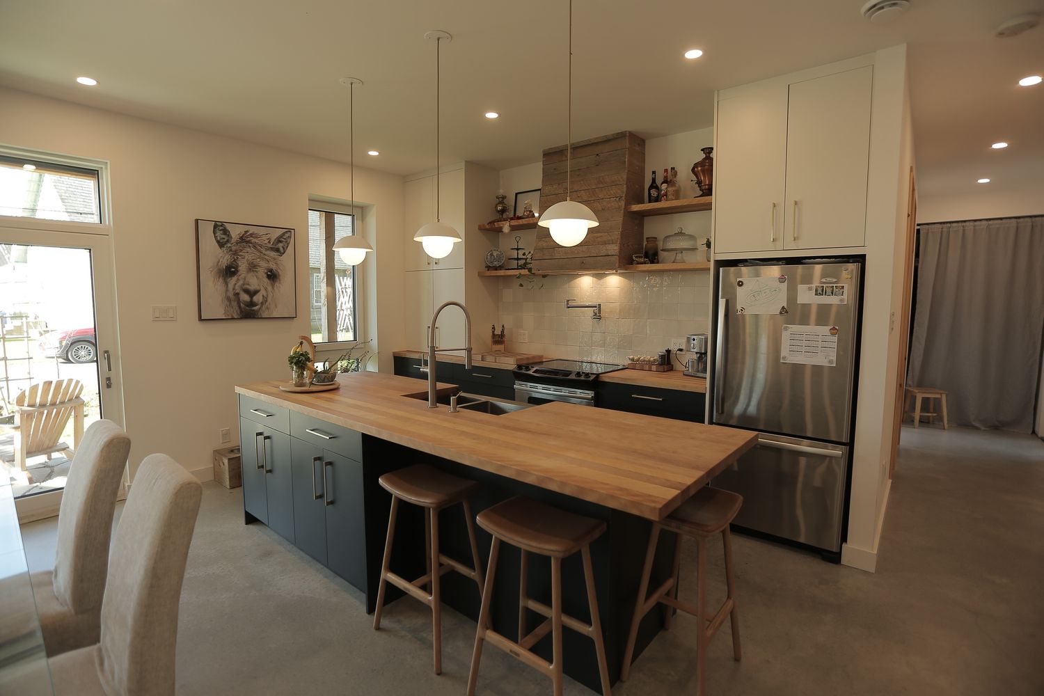 Conçu et construit tout d’abord pour répondre aux besoins de la famille Ruben-Gaudreault mais aussi pour répondre aux exigences les plus élevées des certifications LEED et Passive house US. Implantation harmonieuse au cœur du noyau villageois de Sutton.