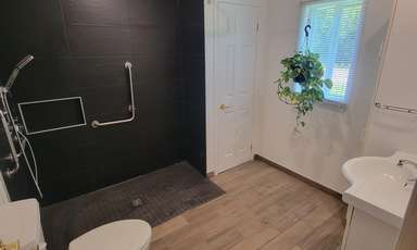 adaptation d'une salle de bain pour usager en fauteuil roulant Recherches associées Salle de bain Saint-Jérôme/Blainville (Laurentides) Adaptation domicile Douche sans seuil