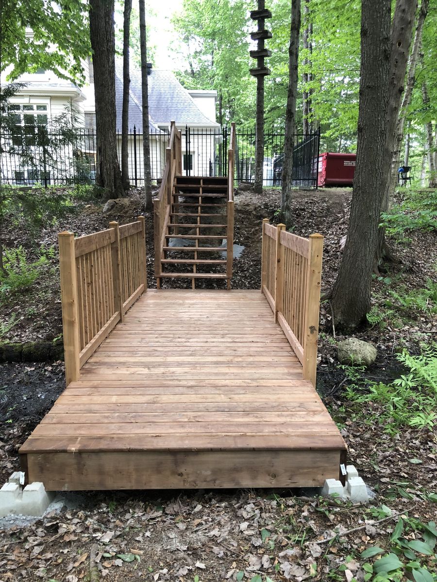 escalier et pont en bois traité Recherches associées Cour arrière Saint-Jérôme/Blainville (Laurentides) Bois traité Escalier extérieur