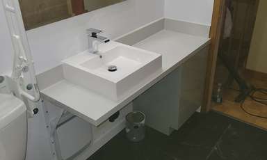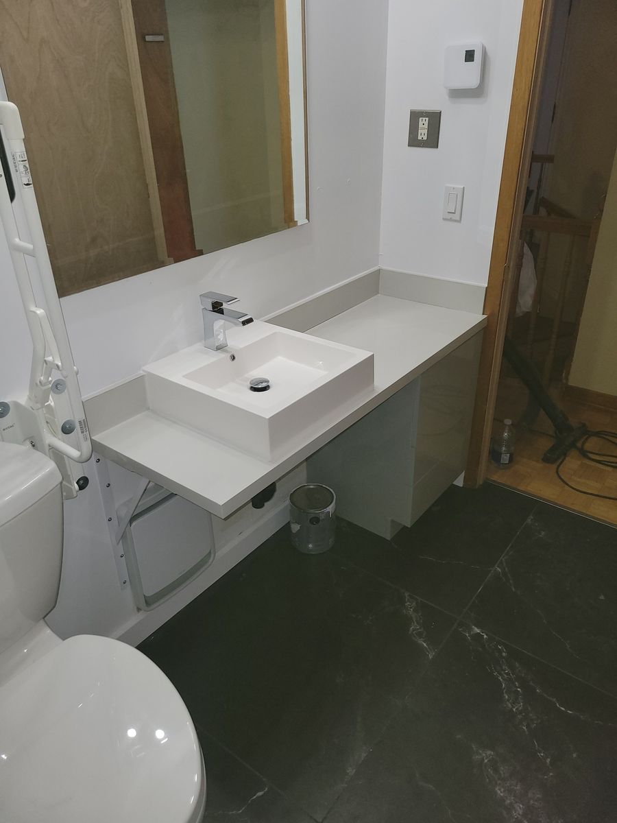 douche sans seuil et vanité adapté pour fauteuil roulant Recherches associées Salle de bain Saint-Jérôme/Blainville (Laurentides) Adaptation de domicile Douche sans seuil