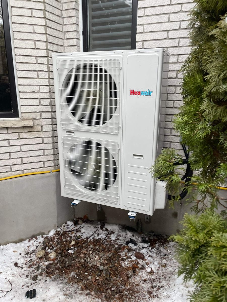 En collaboration avec le programme Maison Verte du Fédéral et chauffez vert du provincial, le client a pu bénéficier d'une aide financière de 6275$ pour le retrait de son système au mazout pour le remplacer par une thermopompe Centrale haute efficacité