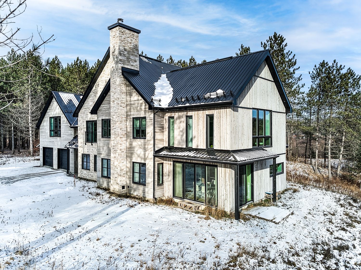 • La maison accueille 5 chambres, dont une au RDC, isolée des aires de vie communes. Le RDC propose plusieurs zones: un garage double attaché et salle de rangement attenante, une entrée avec un grand mudroom : zone utilitaire. une zone plus studieuse avec deux bureaux isolés l’un de l’autre. Des aires de vie baignant de lumière, finalisent de composer ce RDC. À l’étage, c’est la zone familiale, avec les chambres des enfants et leurs salles de bains, le quartier des maîtres avec sa salle de bain et son walk-in. Une salle polyvalente servant à la fois de salle de jeux et de yoga, complètent cet étage.
