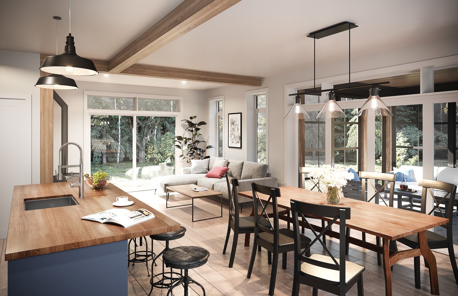 Le modèle COBALT-3+ offre 1 654 pi2, comprenant un rez-de-chaussée et un étage. Avec ses trois chambres, ses deux salles de bain et sa terrasse couverte, ce modèle offre un milieu de vie spacieux et chaleureux, pour profiter de la nature en toute quiétude.