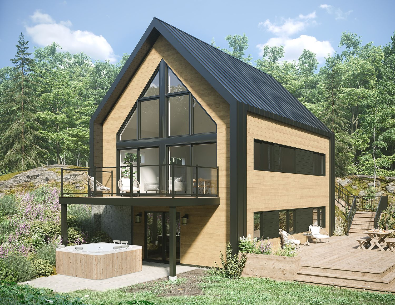 • “prêt-à-finir” : Nous vous livrons la maison après l’étape du gypse et des joints. Nous nous occupons des services pour le terrain, excavation, puits, fondation, charpente, toiture, revêtement extérieur ainsi que division intérieure et la mécanique (ventilation, plomberie, électricité).