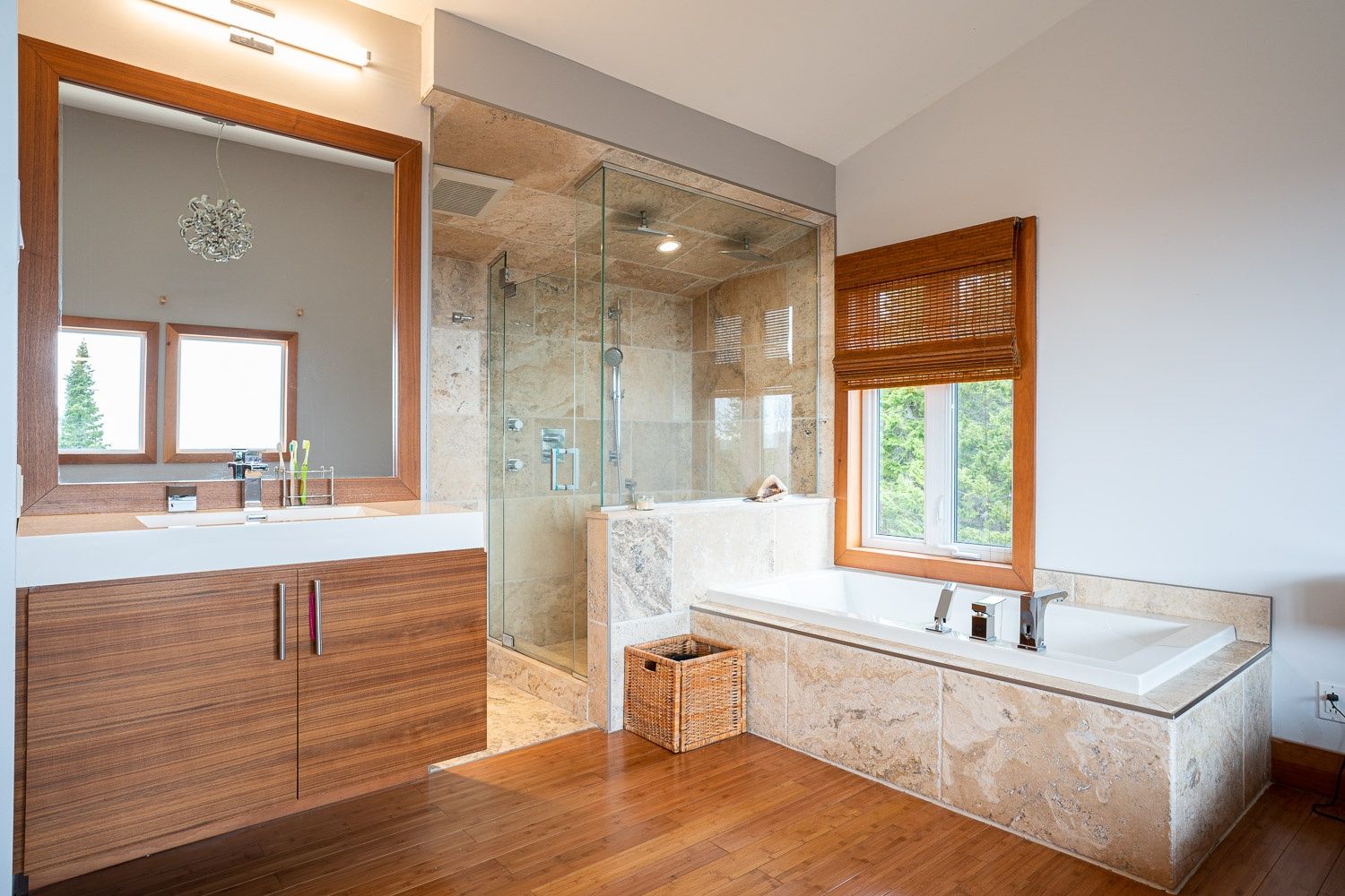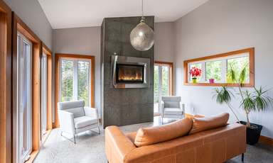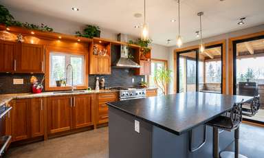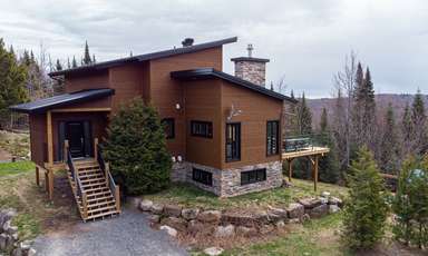 Voici un exemple de projet qui a vieilli bien dans le temps. Cette maison construite en 2010 nous montre bien la mentalité de la construction durable. Après plus de 10 ans, cette maison reste parfaitement au goût du jour. Située en sommet de montagne avec une exposition franc sud, elle reflète bien le design solaire passif. Les clients ont opté pour des finitions en bois naturel, une cuisine en cerisier, des meubles de salle de bain en noyer, sans compter le magnifique escalier central avec le jeu de poutre en acier. La vue y est à couper le souffle.