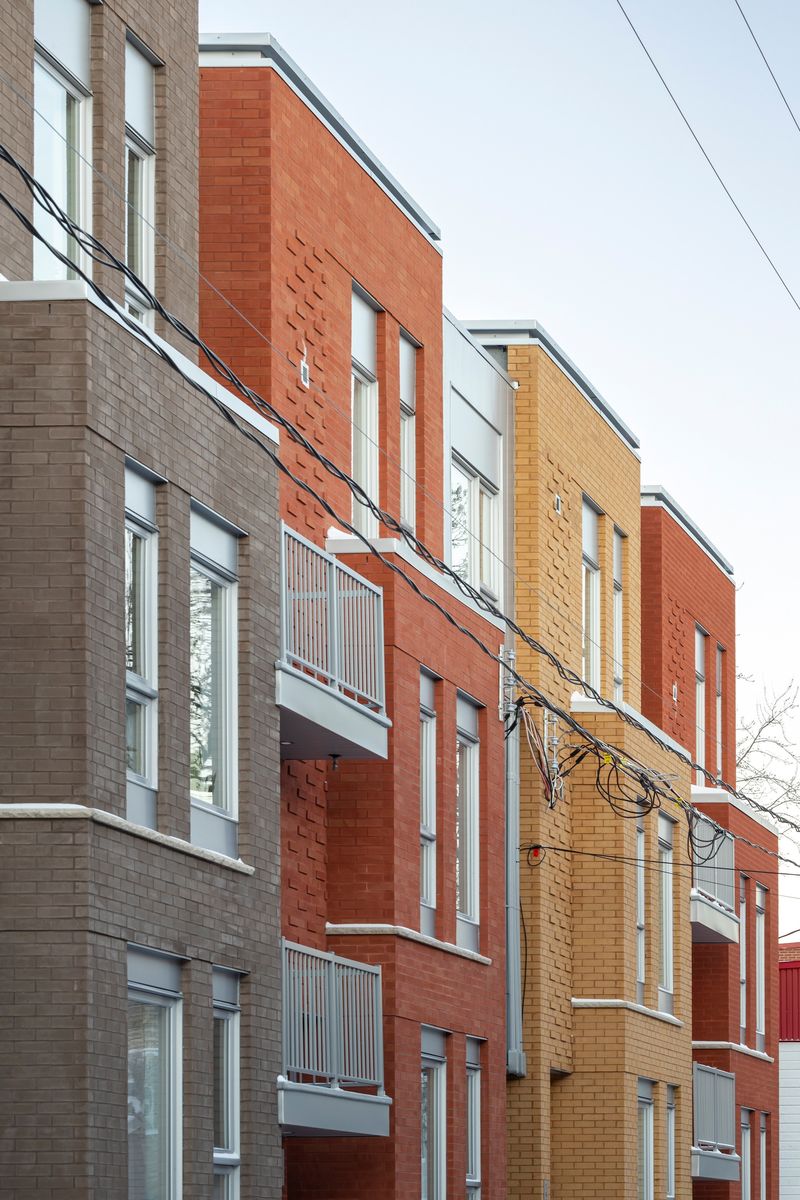 Charles est situé à proximité du parc linéaire de la rivière Saint-Charles dans le quartier Saint-Sauveur. Il regroupe à la fois de grandes unités sur deux niveaux et plusieurs traversantes aux étages supérieurs qui s’ouvrent sur des terrasses généreuses à l’arrière. Charles exprime son individualité dans un contexte urbain hétéroclite et disparate. Les quatre volumes de maçonnerie aux couleurs contrastantes, habilement morcelés pour réduire leur impact sur rue et sculptés avec un jeu de brique en avancée, sont entrecoupés par d’étroits retraits de parement léger dans lesquels les circulations verticales et la porte cochère viennent se glisser. Les escaliers extérieurs en métal architectural, rehaussés par des bacs de plantation et des filtres végétaux, distribuent les entrées des logements en retrait de la rue pour assurer l’intimité des occupants. En façade, le rythme régulier et les proportions des fenêtres plus traditionnelles tranchent avec la composition contemporaine du jeu de pleins et de vides évoqués par la matérialité.