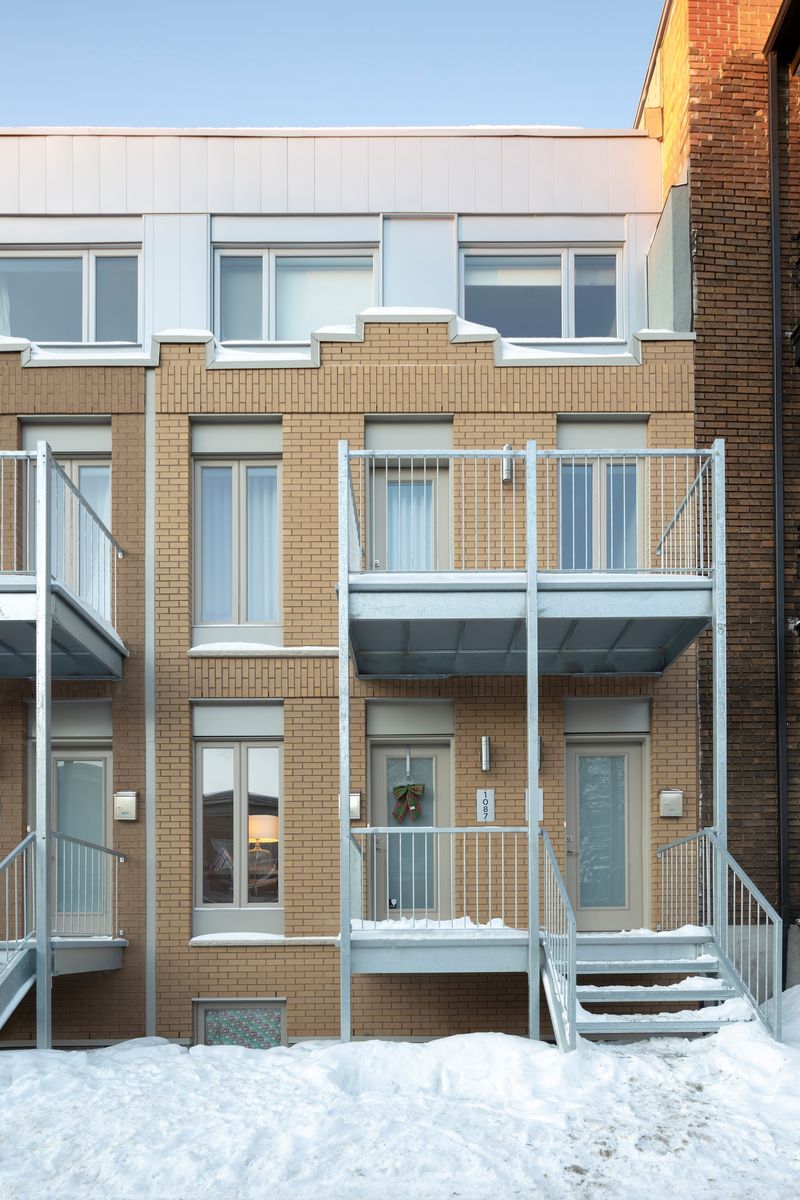 Situé sur la 1re avenue à Limoilou, Belzébuth et Élizabeth offre un stationnement en cour arrière pour chaque logement. Les unités d'au moins trois chambres sont traversantes et lumineuses. Les larges balcons emblématiques ont été simplifiés pour mieux s’harmoniser à ceux présents à proximité et sauront certainement animer la vie urbaine de la ruelle présente en fond de lot. Tout en gardant la topographie naturelle du site, des jeux de maçonnerie rehaussent aussi au caractère du socle et contribuent à améliorer l’intégration du projet au contexte urbain tout en gardant notre signature architecturale contemporaine. Le corps de bâtiment a été re-découpé pour réinterpréter le bâtiment existant : le socle de maçonnerie reprend les grandes lignes de l’architecture traditionnelle du Plex avec une trame régulière et des proportions typiques des ouvertures d’époque. La ré-interprétation des frontons distinctifs du quartier est primordiale pour ainsi garder l’esthétique de l’époque. Les unités du bas sont conçues de manière à ce que leur terrasse individuelle permette un accès direct aux stationnements, tandis que les unités du haut profitent de grandes terrasses sur toit qui surplombe l’environnement.