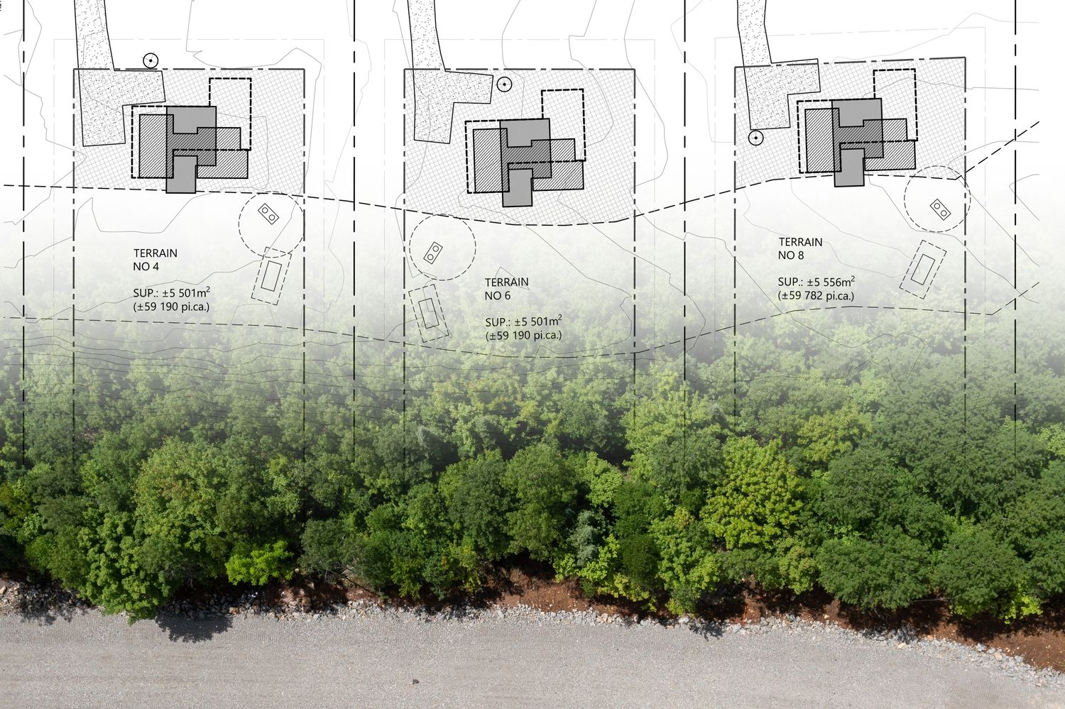 Les terrains d’environ 50 000 pieds carrés, offrent une vue imprenable sur les montagnes sauvages de la région et procurent aux futurs occupant un espace intime et préservé.
