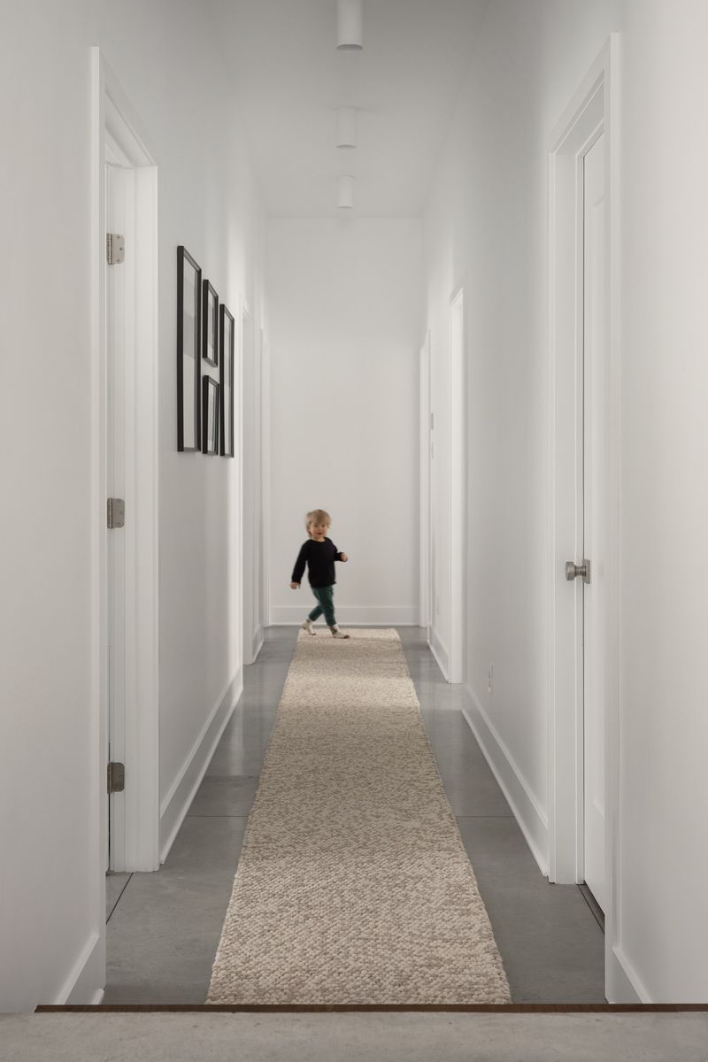 Nous avons conçu le projet en puisant notre inspiration dans le riche tissu pavillonnaire et villageois de la région de St-Denis-sur-Richelieu, qui abrite de magnifiques maisons patrimoniales pleines de caractère. Notre intention était de créer un habitat unique qui s'intègre harmonieusement dans son environnement, en respectant le patrimoine architectural existant. Nous avons incorporé et réinterprété des éléments singuliers et représentatifs de ce contexte, tels que les cheminées au toit et les jeux de volumes. La conception architecturale des volumes s'inspire des anciennes maisons environnantes, en privilégiant la sobriété par la symétrie et la séparation fonctionnelle. Un volume bas et délicat accueille les espaces de nuit, tandis qu'un volume plus haut et prédominant démarque les espaces de vie. L'entrée se situe au cœur de la maison, permettant une transversalité d'avant en arrière.