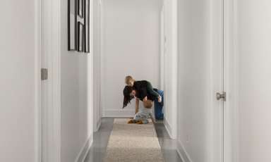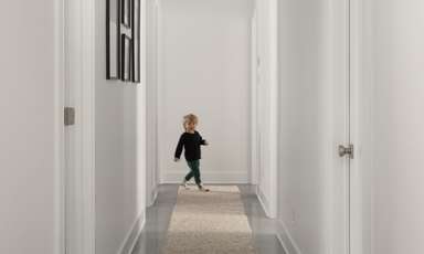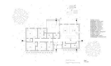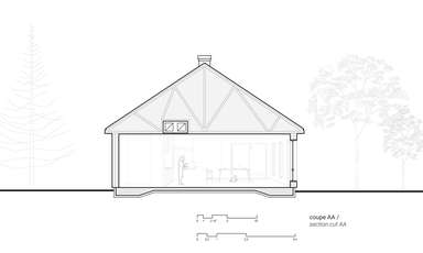 Nous avons conçu le projet en puisant notre inspiration dans le riche tissu pavillonnaire et villageois de la région de St-Denis-sur-Richelieu, qui abrite de magnifiques maisons patrimoniales pleines de caractère. Notre intention était de créer un habitat unique qui s'intègre harmonieusement dans son environnement, en respectant le patrimoine architectural existant. Nous avons incorporé et réinterprété des éléments singuliers et représentatifs de ce contexte, tels que les cheminées au toit et les jeux de volumes. La conception architecturale des volumes s'inspire des anciennes maisons environnantes, en privilégiant la sobriété par la symétrie et la séparation fonctionnelle. Un volume bas et délicat accueille les espaces de nuit, tandis qu'un volume plus haut et prédominant démarque les espaces de vie. L'entrée se situe au cœur de la maison, permettant une transversalité d'avant en arrière.