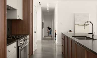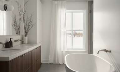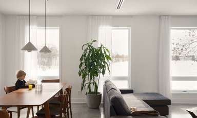 Le projet a été conceptualisé selon les principes de passivhaus, atteignant un taux de changement d’air à l’heure de 0.27 CAH@50Pa et en tirant parti des avantages bioclimatiques tel que l'orientation solaire et la ventilation naturelle. Les ouvertures ont été soigneusement conçues pour optimiser la luminosité naturelle sans provoquer de surchauffe. Le choix des matériaux complète cette approche en apportant une masse thermique significative. De nombreuses décisions ont été prises afin de promouvoir et de démocratiser la construction écologique. Tout d'abord, l'aspect écologique a été mis de l’avant par la construction d’une enveloppe hautement performante, avec une isolation supérieure de 30 % par rapport au code de construction, ce qui permet d'atteindre un score de 47 sur l'échelle du Home Energy Rating System. Cela signifie que Les Bases est 53 % plus efficace sur le plan énergétique qu'une habitation standard neuve. De plus, des principes tels que la charpente avancée, qui réduit la quantité de structure nécessaire à la construction tout en maximisant l'isolation, et l'utilisation d'une dalle monolithique sur le sol, permettent de réduire l'empreinte carbone du projet, son impact environnemental et de garantir sa durabilité et sa résilience pour les années à venir. La résidence est en voie de certification LEED de niveau platine, soit le plus haut niveau d'excellence. Une attention particulière a été accordée au choix des matériaux et des composants de la maison, en privilégiant leur durabilité, leur caractère écologique et recyclé afin de s'inscrire dans la continuité des constructions d'époque, tout en favorisant les produits et les fournisseurs locaux, afin de créer un lieu de vie sain et respectueux de l'environnement et sa communauté.