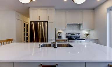 Le foyer a été conservé, mais son habillage totalement remodelé.  De plus les matériaux de la cuisine sont durables et résistants au temps, surtout pour la grande utilisation qui sera faite de la cuisine par la propriétaire des lieux.  La longévité des matériaux sélectionnés étaient un critères de base essentiel, puisque l'investissement devait être pour les 15-20 prochaines années.