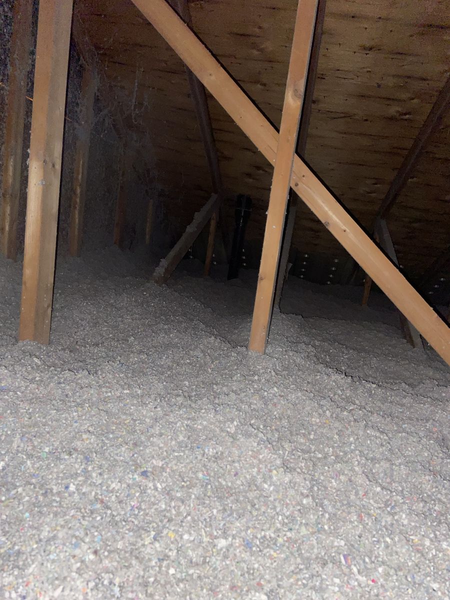 Nous avons décontaminé la charpente de toit à l'aide d'un traitement anti fongique. Par la suite nous avons bien dégagé les soffites et installé des styro vent pour assurer une bonne ventilation dans le grenier. Finalement, nous avons ajouté un 12'' de cellulose soufflé pour obtenir une valeur de R-51 et nous avons isolé adéquatement la trappe d'accès de l'entretoit.