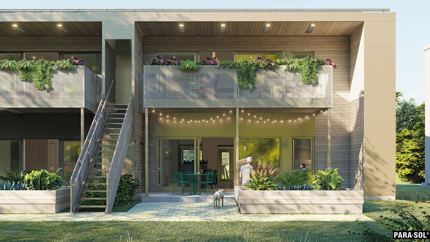 Ambiance des terrasses arrières de l'Éco-habitat 4U