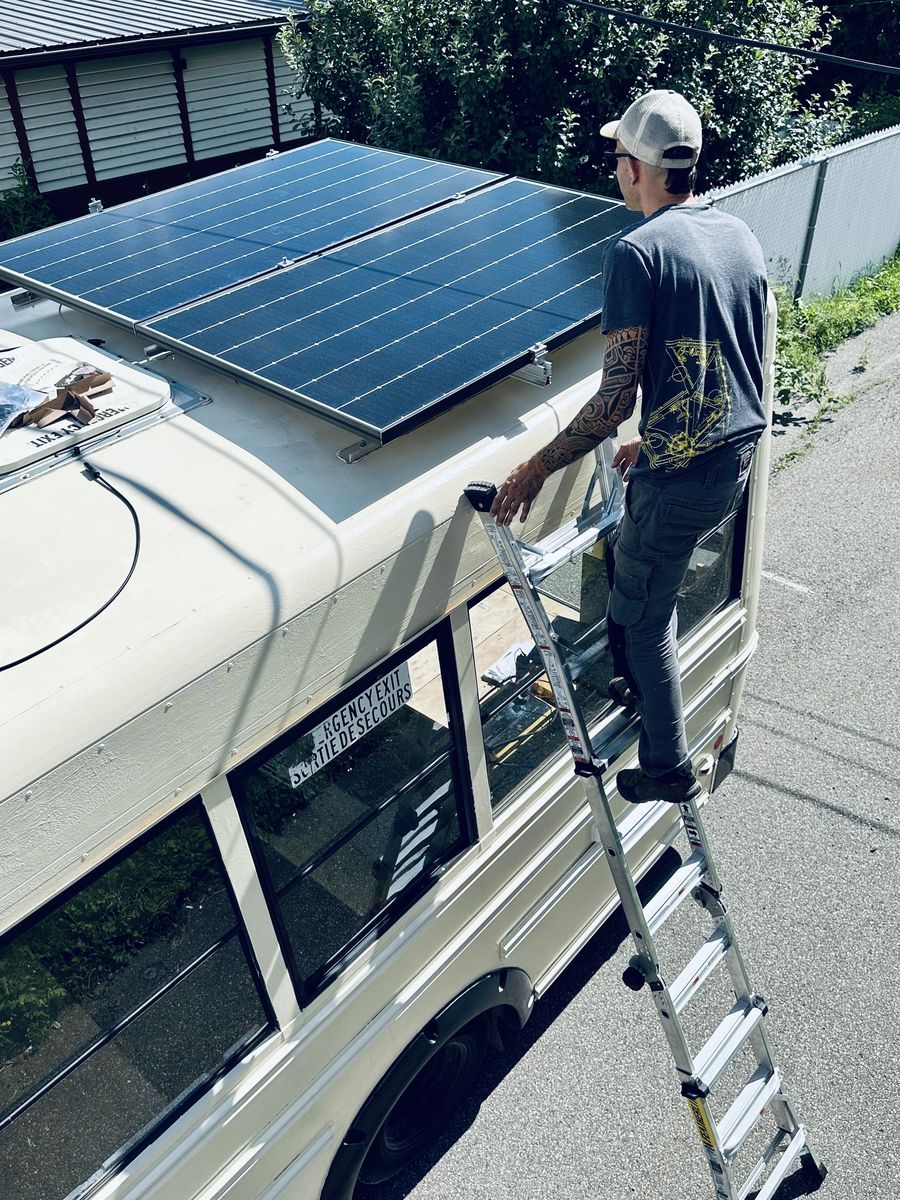 Réalisation d'un système électrique autonome en énergie solaire. Montage sur le toit du bus de 4 panneaux de 340 Watts pour un total de 1360 Watts de potentielle PV. Ajout branchement pour raccord avec l'alternateur du véhicule pour avoir deux sources différentes d'alimentation. Conception et montage en atelier du système électrique. Installation du système électrique avec entre autre: - 2 batteries Lithium de 100 Amp/48 Volts avec système de communication bluetooth - Onduleur chargeur Multiplus II - 3000 Watts - Cerbo GX *Projet en collaboration avec WattOSoleil !