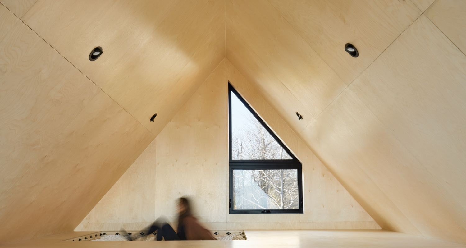 Conçu pour s'intégrer harmonieusement à son environnement, le chalet Les Cousins ne cherche pas à dominer le paysage, mais plutôt à en faire partie. Les matériaux choisis, ainsi que la conception globale du bâtiment, ont été pensés pour s'harmoniser avec la beauté naturelle de l'Estrie. L'emploi du béton brut, en écho aux formations rocheuses du mont Bolton, montre un profond respect pour le cadre naturel tout en ajoutant une touche contemporaine. Chaque espace de ce chalet a été conçu pour optimiser le confort et l'expérience des résidents et invités. Dès l'entrée dans le chalet, la généreuse fenestration sert de cadre panoramique à l'horizon montagneux et aux lacs sereins de l'Estrie. Les levers et couchers de soleil offrent un spectacle quotidien, chaque saison apportant sa propre palette de couleurs vibrantes. Les trois chambres, bien qu'intimement connectées à la nature par leurs vues, offrent chacune une sensation unique, garantissant que chaque visiteur trouve un espace qui lui ressemble. Le hamac en mezzanine, au-delà de son rôle de relaxation, joue astucieusement avec la lumière naturelle, créant un espace accueillant dès le seuil franchi.