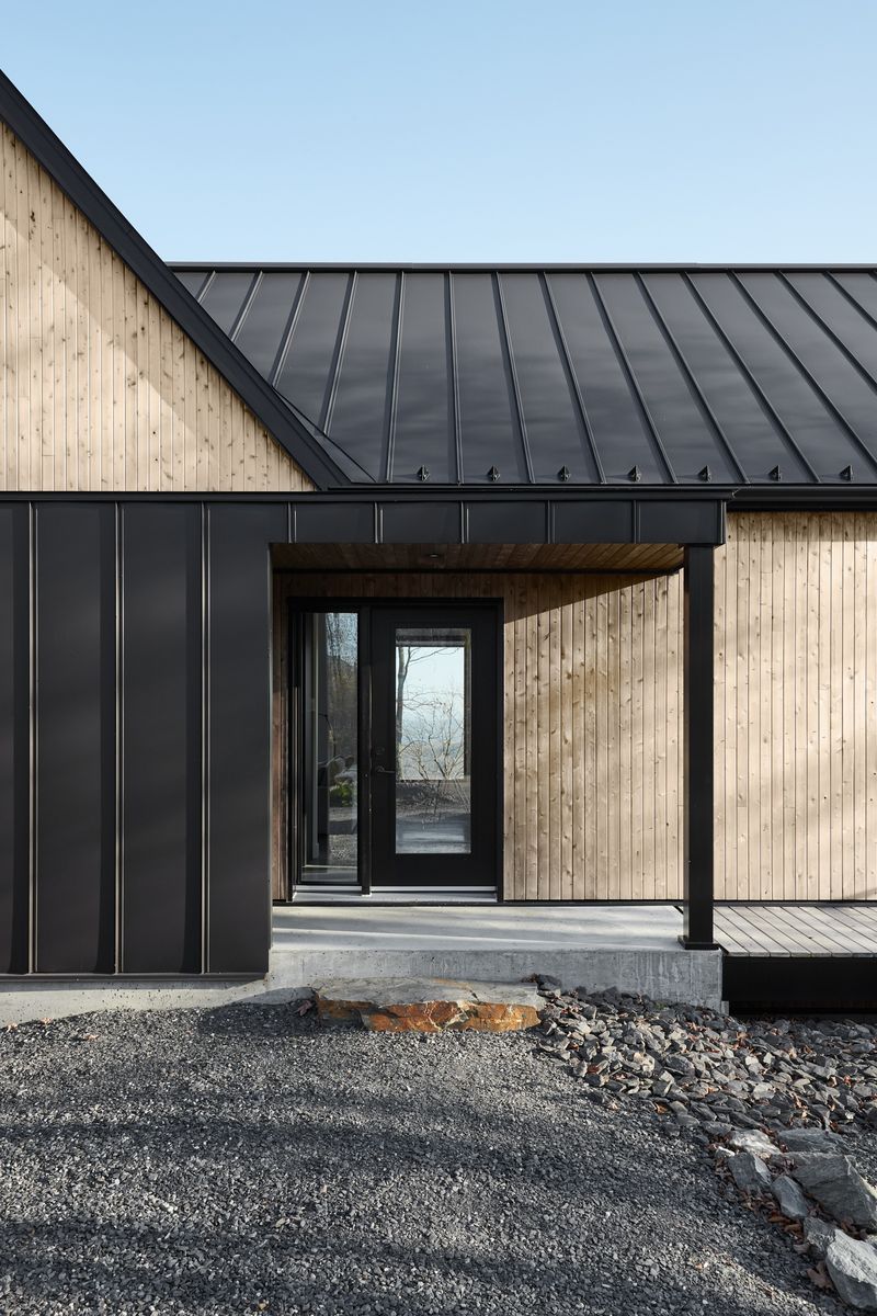 Conçu pour s'intégrer harmonieusement à son environnement, le chalet Les Cousins ne cherche pas à dominer le paysage, mais plutôt à en faire partie. Les matériaux choisis, ainsi que la conception globale du bâtiment, ont été pensés pour s'harmoniser avec la beauté naturelle de l'Estrie. L'emploi du béton brut, en écho aux formations rocheuses du mont Bolton, montre un profond respect pour le cadre naturel tout en ajoutant une touche contemporaine. Chaque espace de ce chalet a été conçu pour optimiser le confort et l'expérience des résidents et invités. Dès l'entrée dans le chalet, la généreuse fenestration sert de cadre panoramique à l'horizon montagneux et aux lacs sereins de l'Estrie. Les levers et couchers de soleil offrent un spectacle quotidien, chaque saison apportant sa propre palette de couleurs vibrantes. Les trois chambres, bien qu'intimement connectées à la nature par leurs vues, offrent chacune une sensation unique, garantissant que chaque visiteur trouve un espace qui lui ressemble. Le hamac en mezzanine, au-delà de son rôle de relaxation, joue astucieusement avec la lumière naturelle, créant un espace accueillant dès le seuil franchi.