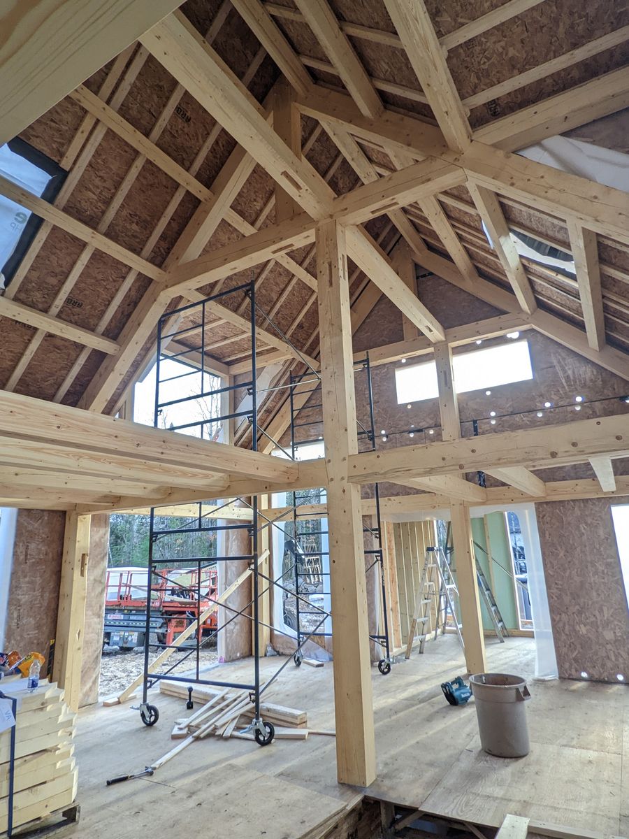 Une réalisation sur mesure avec intégration au plan de la structure timber frame, une vue imprenable sur le terrain grâce à sa lucarne toute hauteur dans la partie séjour. Suivi technique et budgétaire pour une auto-construction.