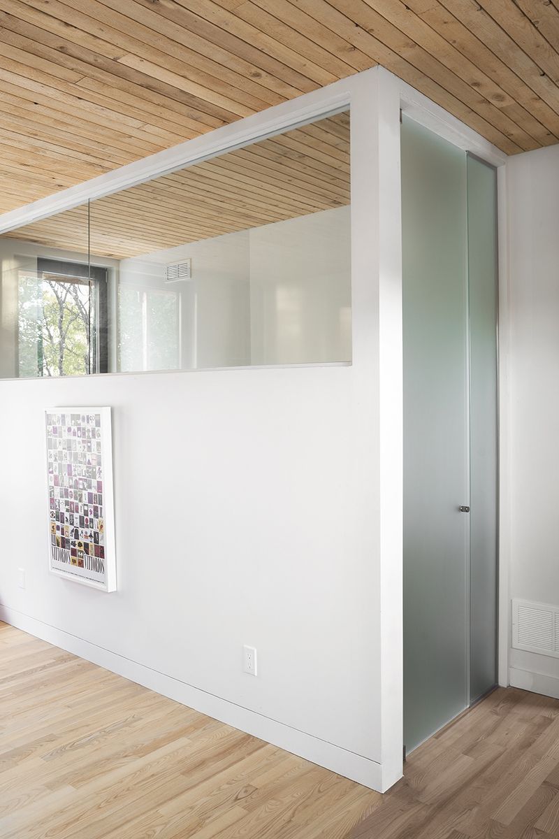 Afin de profiter d’un maximum d’éclairage naturel sur cette parcelle étroite de 20 pieds de largeur et de 90 pieds de longueur, les pièces de vie, constituant un grand volume ouvert, se trouvent à l’étage de la maison. Cette configuration reprend l’idée du ‘’piano nobile’’, le premier étage des demeures italiennes pourvu de grandes fenêtres. Le rez-de-chaussée accueille un vestibule donnant sur la rue, un autre donnant sur la ruelle, ainsi que la circulation menant aux différents étages. Deux chambres et deux salles de bain se retrouvent également au rez-de-chaussée. La mezzanine, entourée de toits et d’arbres, accueille le bureau qui sert aussi de chambre d’invités. Le sous-sol est utilisé comme salle de jeu.