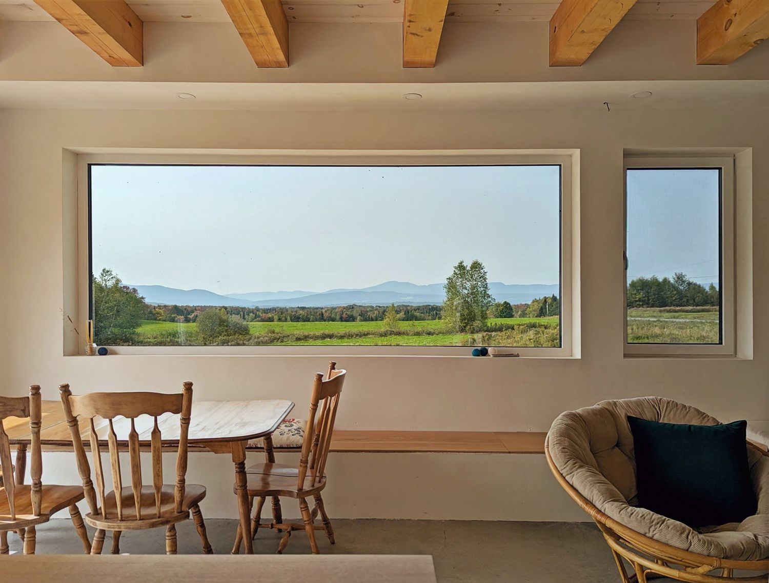 Fascinés par les maisons passives, Camille et Audrey rêvaient d’une maison résiliente, autonome, performante et au confort exceptionnel, été comme hiver. Au milieu des vallées de Potton, entourée de paysages majestueux, elle se fait discrète pour laisser place à la beauté de la nature. À l’intérieur, l’aménagement en toute simplicité permet la mise en valeur du spectacle extérieur tout en offrant un bien-être absolu.