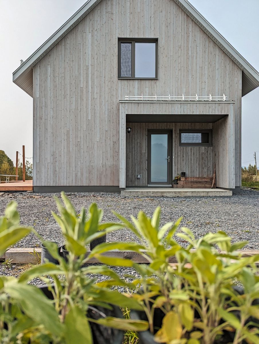 Fascinés par les maisons passives, Camille et Audrey rêvaient d’une maison résiliente, autonome, performante et au confort exceptionnel, été comme hiver. Au milieu des vallées de Potton, entourée de paysages majestueux, elle se fait discrète pour laisser place à la beauté de la nature. À l’intérieur, l’aménagement en toute simplicité permet la mise en valeur du spectacle extérieur tout en offrant un bien-être absolu.