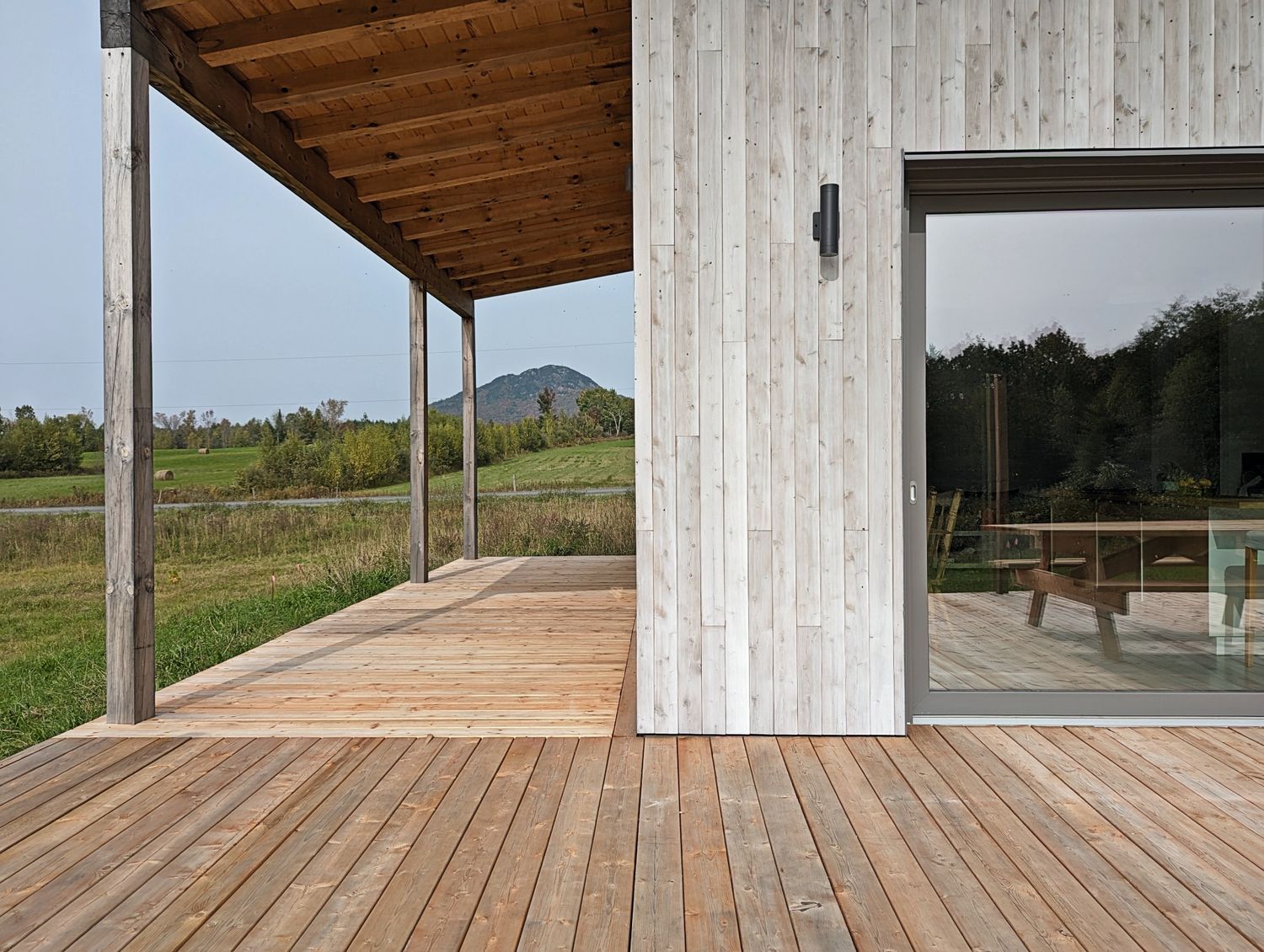 Fascinés par les maisons passives, Camille et Audrey rêvaient d’une maison résiliente, autonome, performante et au confort exceptionnel, été comme hiver. Au milieu des vallées de Potton, entourée de paysages majestueux, elle se fait discrète pour laisser place à la beauté de la nature. À l’intérieur, l’aménagement en toute simplicité permet la mise en valeur du spectacle extérieur tout en offrant un bien-être absolu.