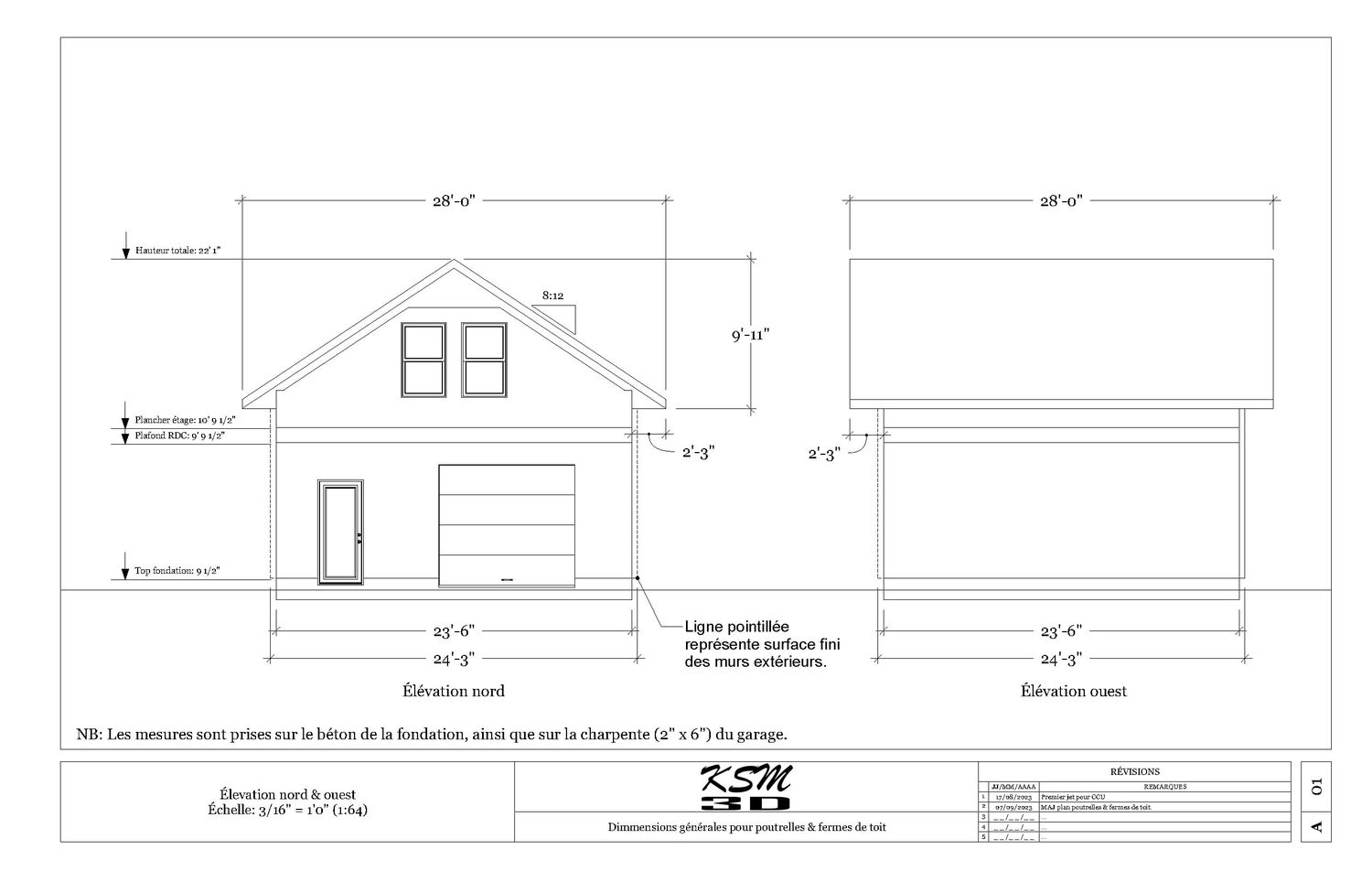 De plus, les dessins 3D étant déja précis, ils pu être utilisés comme référence pour les demandes de soumissions des fondations, ainsi que des fermes de toit.