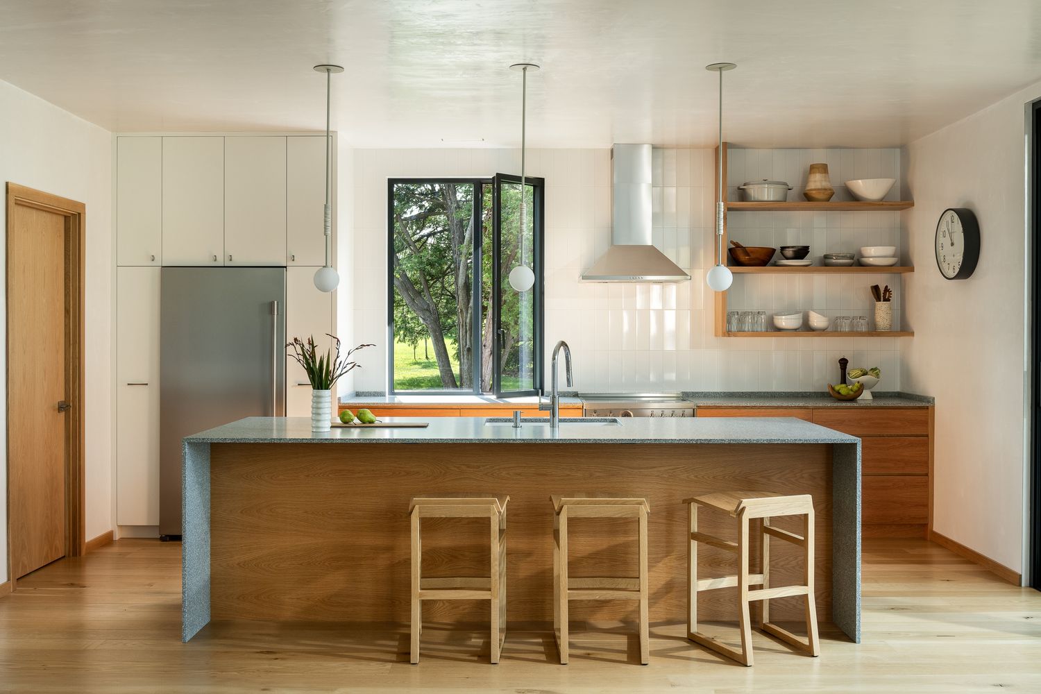 L’aménagement et le design intérieur intérieur, incluant les choix de mobiliers de l’ensemble de la maison sont le fruit du travail de nos clients. Le projet est réalisé avec nos collaborateurs du Vermont.