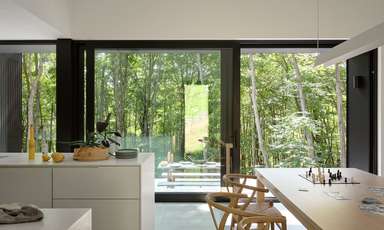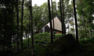 Niché au cœur d’une majestueuse montagne, au sein d’une vaste forêt d’érables, le chalet TISSARAOUATA incarne une vision architecturale à l’objectif clair : respecter profondément les lieux occupés et impacter la terre aussi peu que possible.