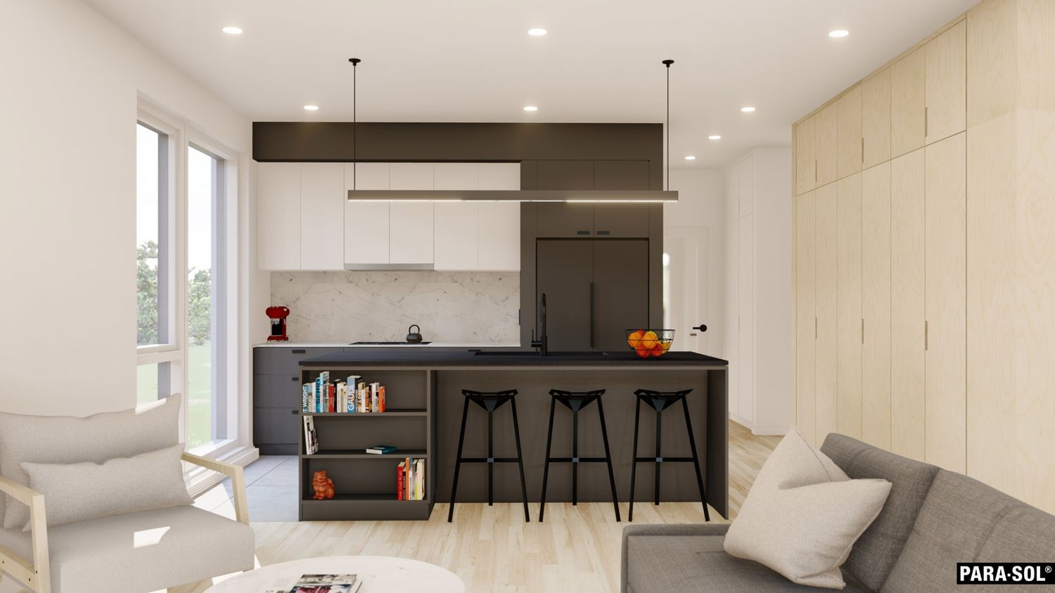 L’immeuble compte six logements d’une superficie respective de 1 250 pi2 et comprenant chacun 3 chambres. Les dimensions du bâtiment sont basées sur une trame structurale permettant différentes options de personnalisation. Afin de faciliter sa mise en chantier à travers le Québec, une partie importante du bâtiment peut être préfabriquée en usine sous la forme de murs en panneaux ou de volumes modulaires.