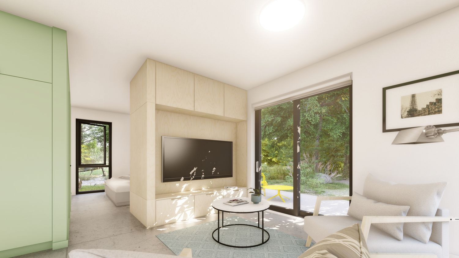L’ÉCO-HABITAT BIGÉNÉRATION est une variante du concept ÉCO-HABITAT S1600, caractérisé par un agrandissement latéral permettant l’ajout d’une unité d’habitation accessoire. Ce type d’habitation se présente comme une solution de densification douce, ayant la qualité de s’implanter harmonieusement sur des terrains initialement lotis pour accueillir des habitations unifamiliales.