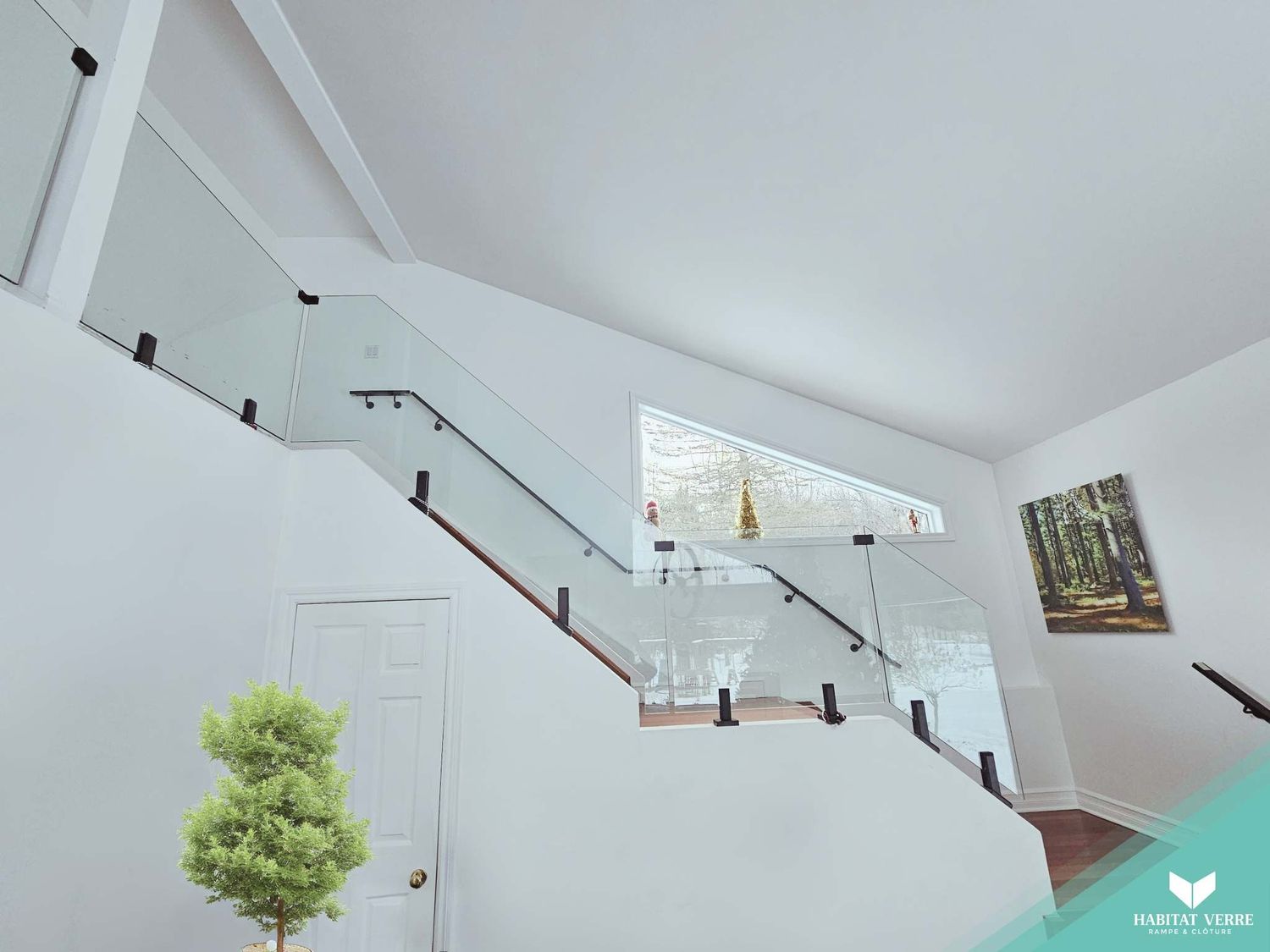 Nous avons conçu sur mesure un garde-corps dans cet escalier pour agrandir et épuré le décor de cette charmante demeure. La sécurité rencontre la beauté. Un véritable bijoux! Projet Signé Habitat Verre