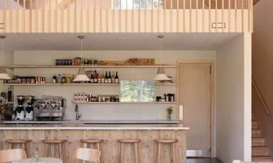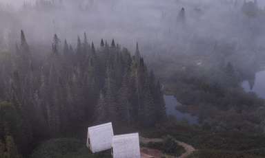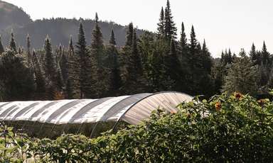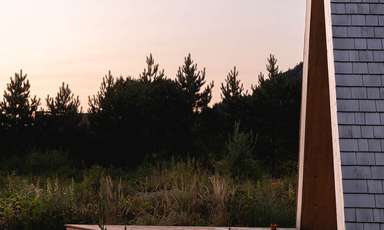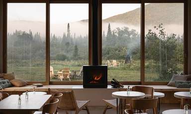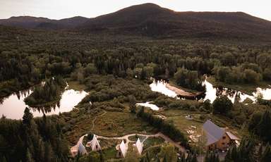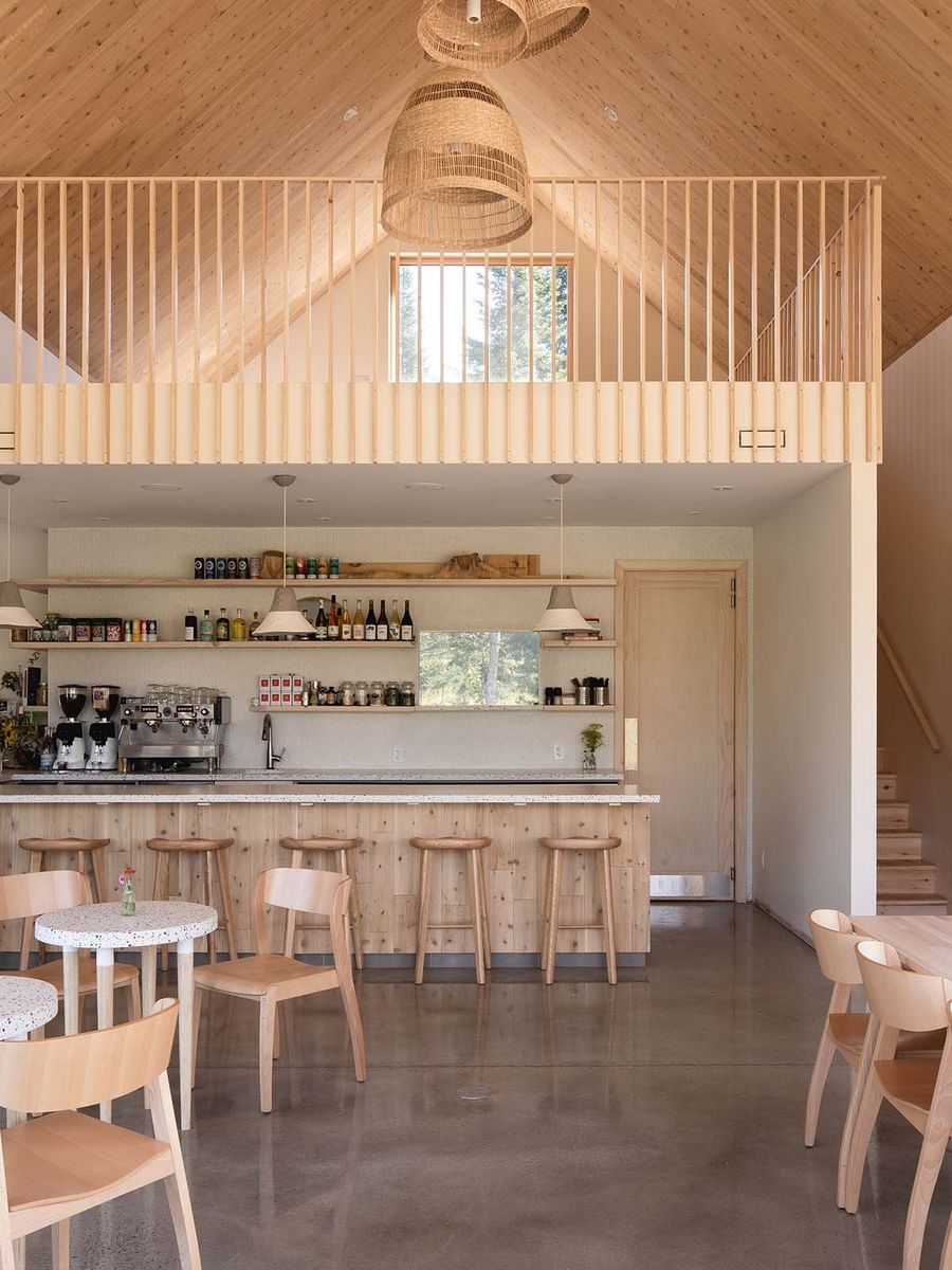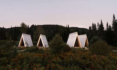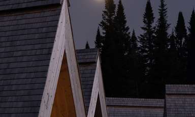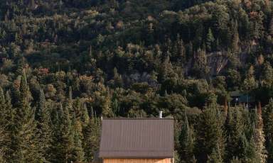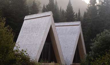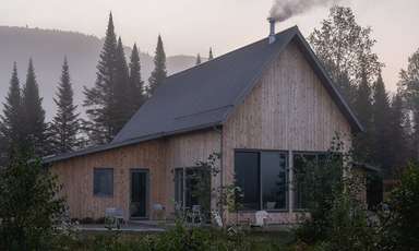 Adossé au Parc national du Mont-Tremblant et situé au creux de la vallée de la rivière du Diable, le projet agrotouristique Farouche propose un concept singulier et unique pour les Laurentides. Exploitant les qualités naturelles et sauvages du territoire de presque cent acres, le projet combine une ferme nordique, un café-buvette, des microrefuges quatre saisons et une base de plein-air. Du côté nord du chemin du Lac-Supérieur, se dresse la grange servant de quartier général aux activités de la ferme. Le parcours qui mène à la petite ferme maraîchère biologique dessert également les serres tunnels, les champs de fleurs et les terres en jachère. C’est au détour de ce bâtiment agricole que débutent les sentiers de randonnées permettant aux visiteurs du site Farouche d’explorer les montagnes de la vallée de La Diable. Côté rivière, au sud du chemin, le café-buvette est au cœur des activités proposées sur le site. Premier bâtiment que l’on aperçoit lors de notre arrivée, on y entre par le marché, qui propose aux visiteurs les produits de saison de la ferme maraîchère et ceux d’autres producteurs de la région, tels que fromages, bières et vins locaux. Au centre du bâtiment, l’espace café et sa cuisine de transformation offrent aussi aux visiteurs de passage et aux occupants des refuges la possibilité de déguster sur place les produits apprêtés de la ferme. La salle à manger s’avance vers la rivière, et ses grandes portes-fenêtres orientées vers l’ouest offrent des vues prenantes sur les couchers de soleil et sur le Mont-Tremblant. Le poêle à bois invite à s’arrêter pour observer la silhouette changeante de la nature, et à se réunir. Niché dans le toit cathédral, un espace mezzanine propose quant à lui un salon tranquille, en retrait. La matérialité est sobre ; les toitures d’acier couleur charbon et le revêtement de pruche naturel rappellent les bâtiments agricoles vernaculaire. Au sud du bâtiment principal se dresse le campement de refuges recouverts de bardeaux de cèdre. Organisés de façon organique et desservis par un sentier sinueux, les quatre petits bâtiments de type A-frame proposent dans un seul espace ouvert un grand lit, une banquette de lecture et un petit poêle au gaz. Par leur minimalisme, les refuges laissent la plus grande place au paysage qui s’ouvre devant soi et à la beauté de la rivière du Diable. Le projet Farouche a été documenté par le photographe Raphaël Thibodeau sur une période de vingt-quatre heures afin de capturer l’évolution du site du lever du soleil sur la rivière jusqu’à l’observation nocturne des refuges illuminés par la lumière de la lune.