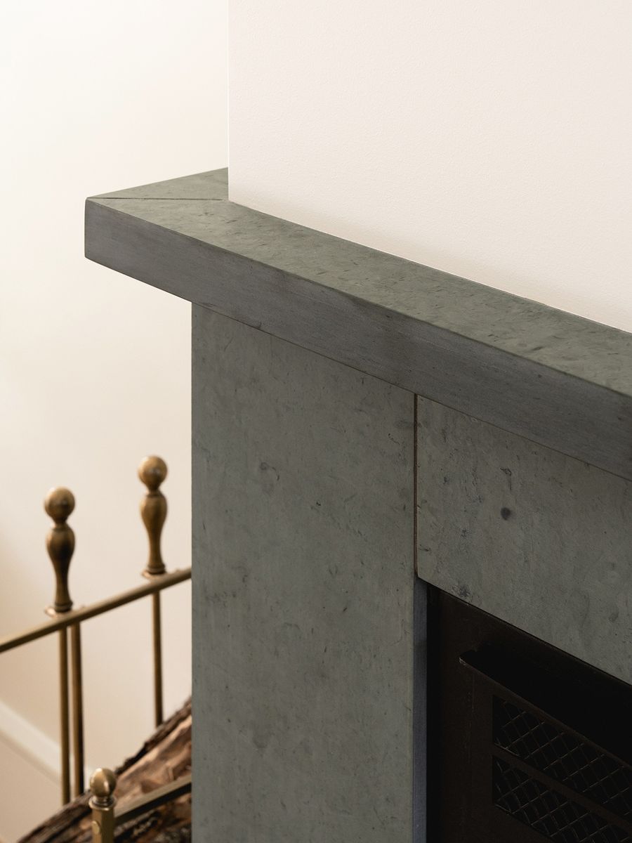 À l'entrée, une nouvelle zone est délimitée par un meuble en chêne blanc fabriqué sur mesure et surmonté d'une vitre en verre fluté. Dans le salon, le nouveau foyer est recouvert de tuiles d'ardoise vertes du Vermont. Du côté de la salle à manger, une nouvelle ouverture en arche dissimule du rangement supplémentaire et facilite l'accès à la cuisine. Une nouvelle saillie vitrée est construite dans la cuisine pour aménager un banc lumineux. Les caissons de cuisine shaker sont un clin d'oeil aux origines de la maison, alors que les caissons de chêne apportent une touche plus contemporaine.
