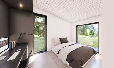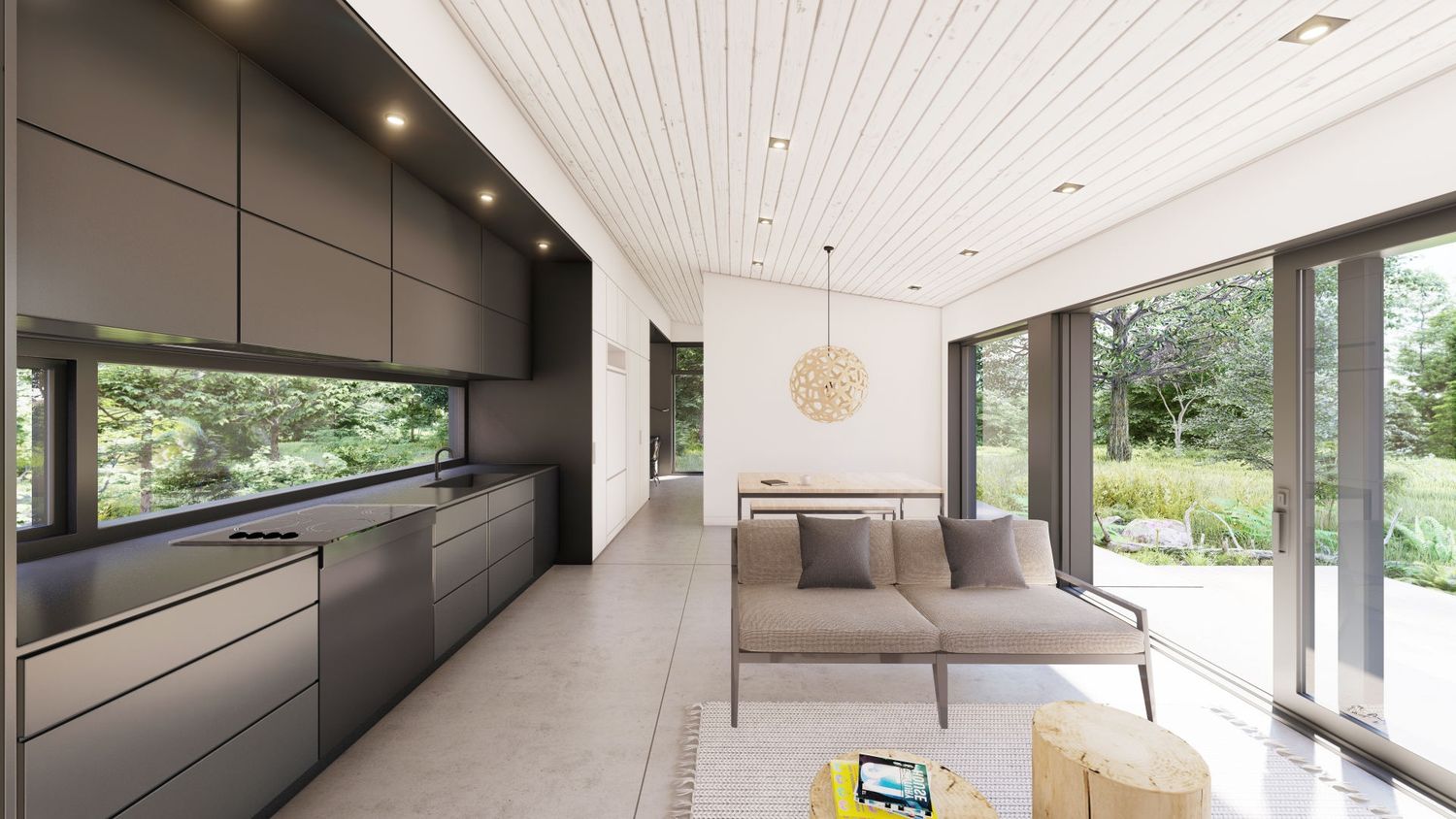 Développé en collaboration avec l’organisme Écohabitation et le fabricant Bâtiment PRÉFAB, le REFUGE S560 a été pensé pour les gens à la recherche d’un lieu simple, contemplatif et fonctionnel pour leur retraite en nature. Grâce à une façade complètement fenestrée, le refuge a la qualité de pouvoir cadrer un paysage et d’offrir des espaces baignés de lumière naturelle.