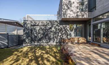 Dans son ensemble, l’habitation a été réfléchie pour pouvoir évoluer à travers le temps et présente une belle flexibilité. Le plan du sous-sol a été conçu de manière à pouvoir permettre, dans le futur, l’intégration d’un logement accessoire. Au 2e étage, la chambre à coucher donnant accès à la toiture-terrasse peut se transformer en espace commun de type bureau partagé ou petit salon pour faciliter la transition vers l’extérieur. Enfin, le garage, suffisamment spacieux pour accueillir deux véhicules, peut être réaménagé de manière à permettre l’intégration d’une zone atelier.