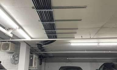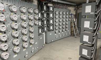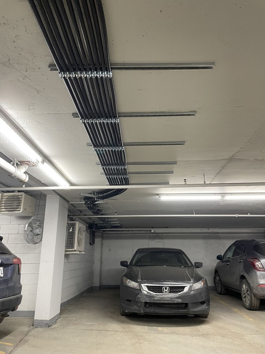 Étant donné que la chambre électrique est à proximité des stationnements, que l'ensemble des compteurs Hydro-Québec s'y retrouvent et que de l'espace est disponible pour l'ensemble des copropriétaires, nous avons proposé l'installation de contrôleurs de charge (DCC de RVE) relié à une borne Flo G5.