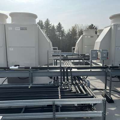 Tuyauterie d'une thermopompe pour chauffer une piscine au Quebec