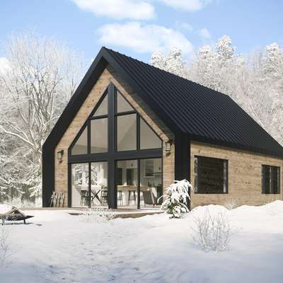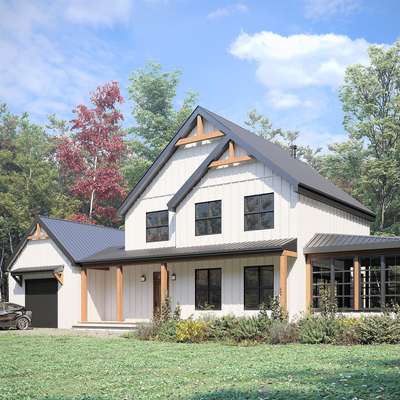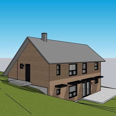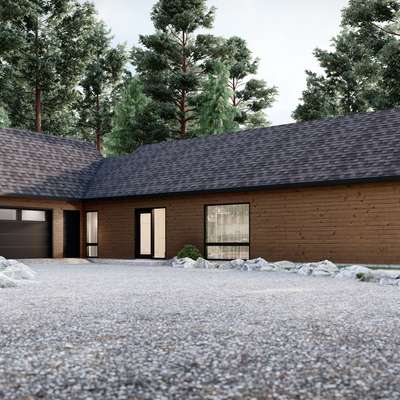 Éco-habitat 4U - Perspective façade avant et du stationnement