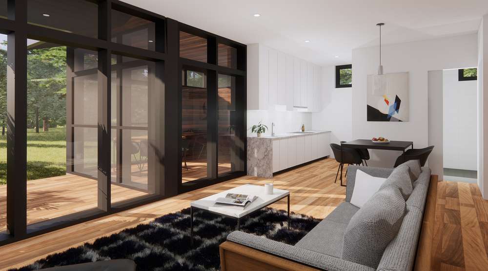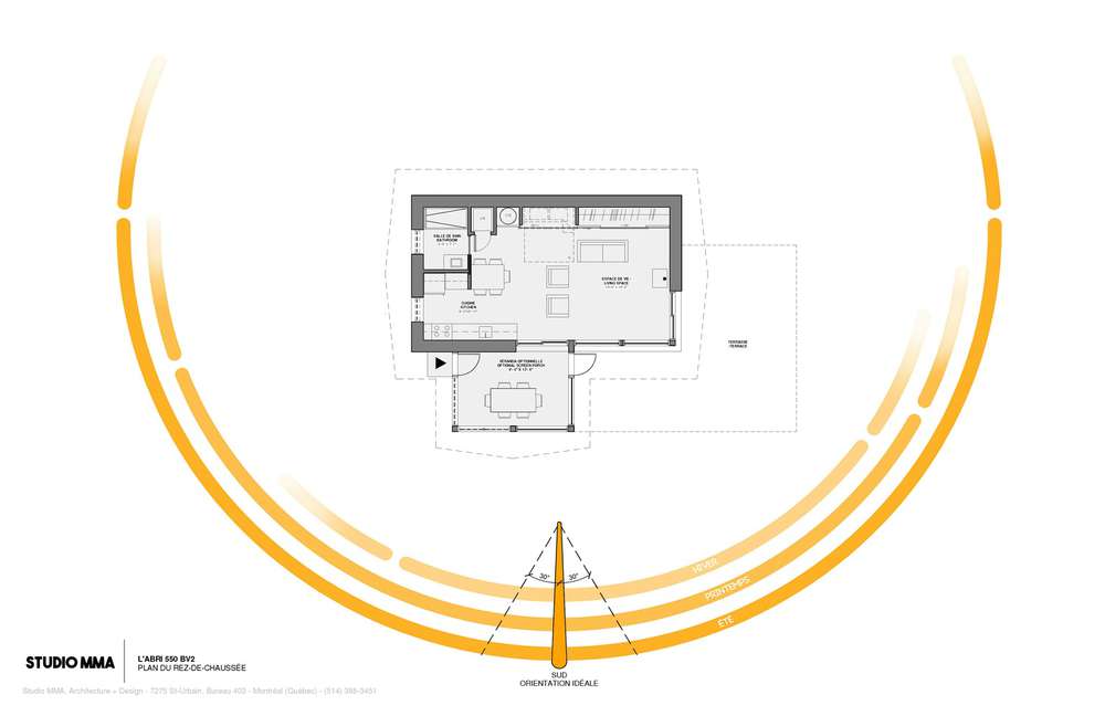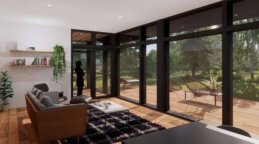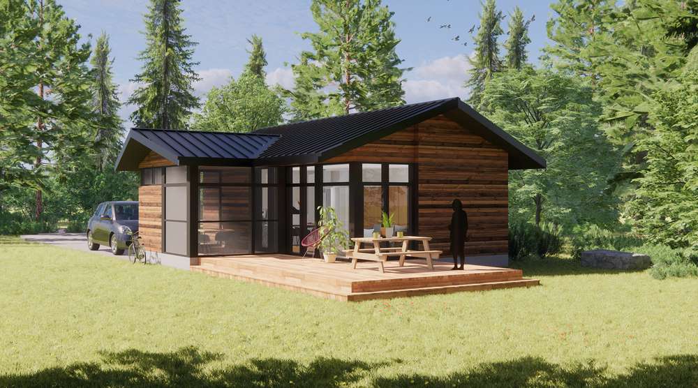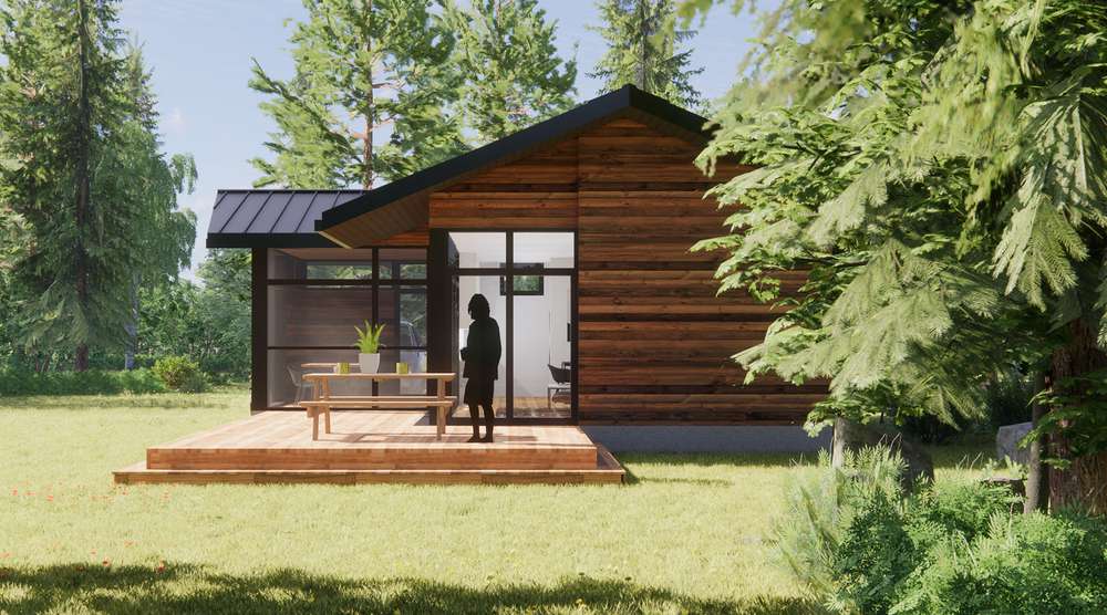 L'Abri 550-BV est la petite maison préfabriquée, parfaite pour ceux et celles qui recherchent un espace de vie de style loft sans compromettre leur bien-être. Avec ses grandes surfaces vitrées et une terrasse intime en option, cette petite maison fait une grande place à la lumière et à la vue extérieure. Deux options sont offertes pour plus de flexibilité : L'Abri 550-BV1 avec la terrase couverte à l'extrémité ou L'Abri 550-BV2 avec la terrasse couverte au centre.