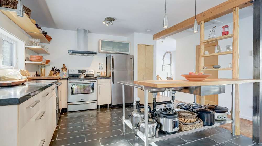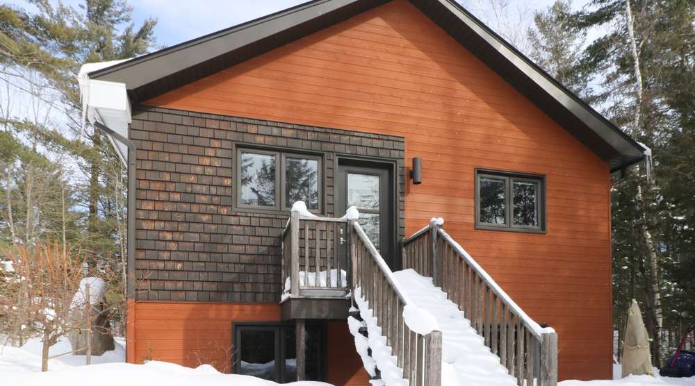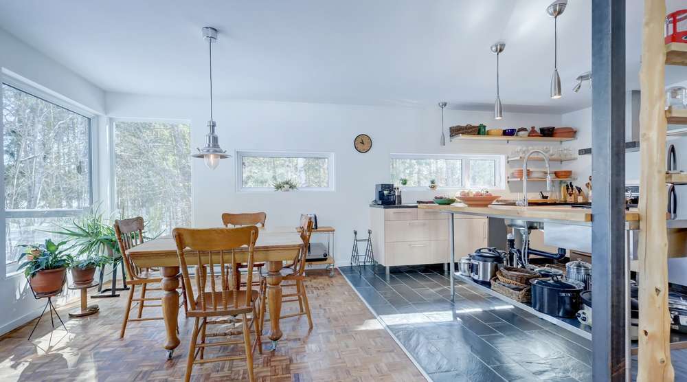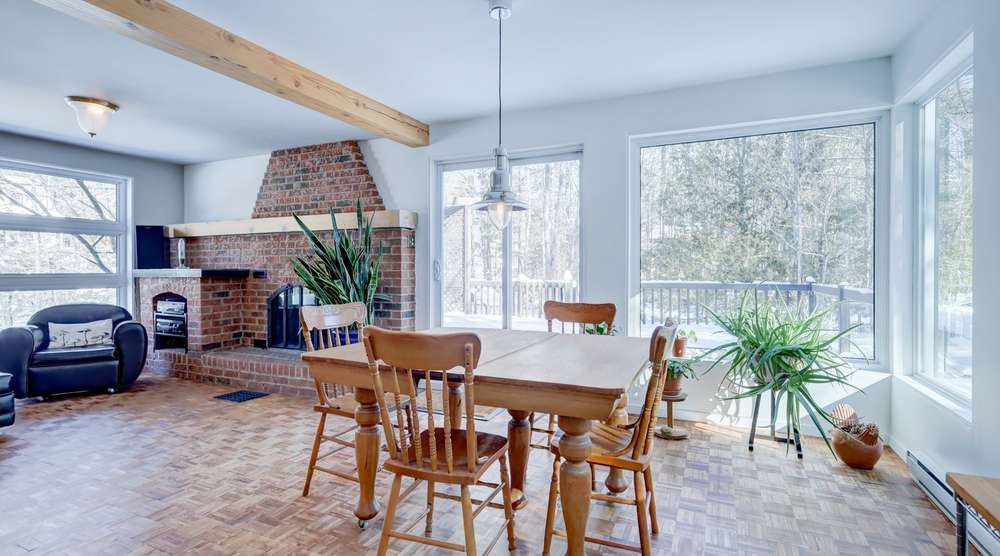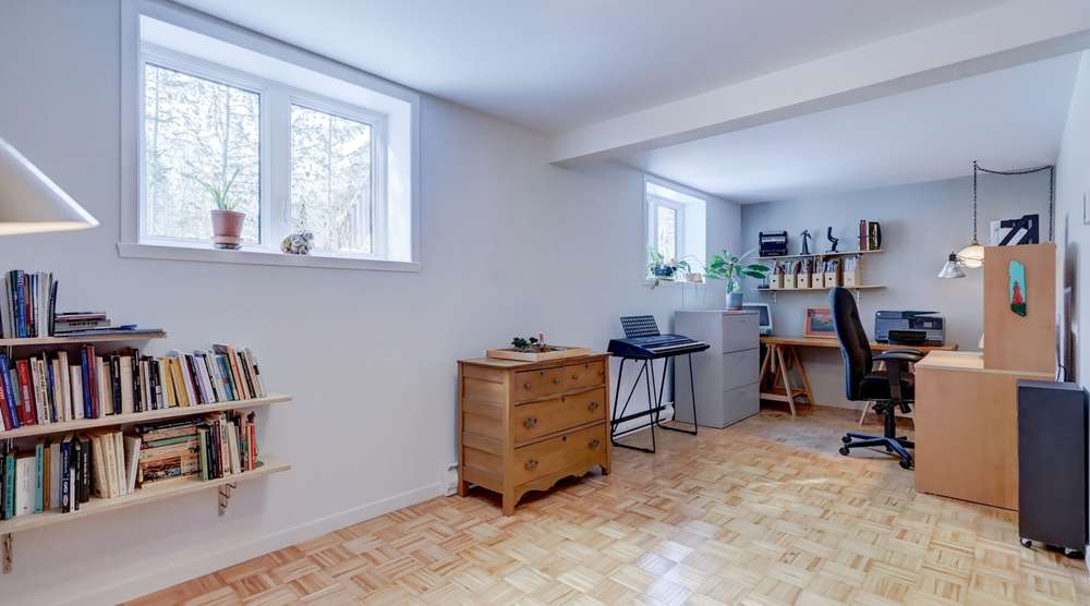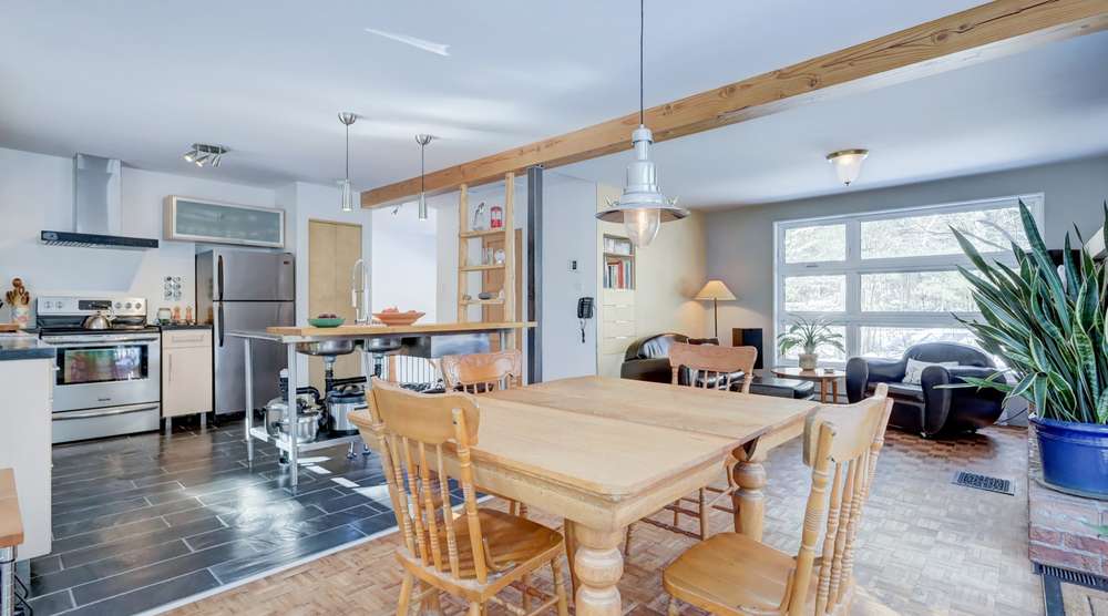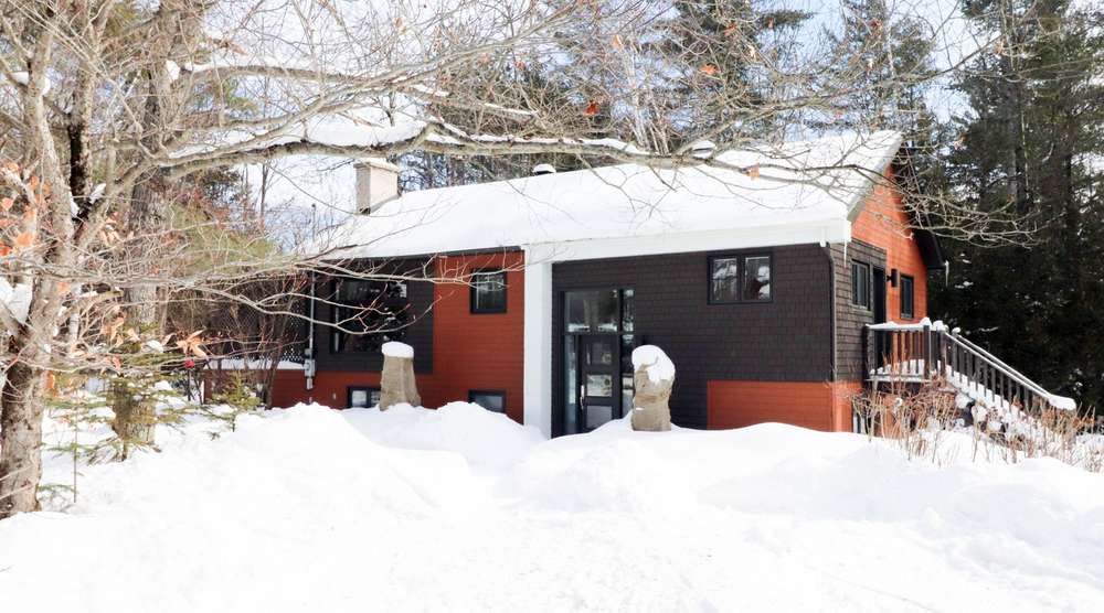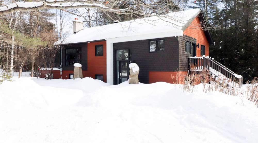 Bordée par un ruisseau et avec vue sur le lac, cette maison de plain pied avec rez-de-jardin rénové en 2011-2012 sur plan d'architecte et suivant les pratiques de construction durable est située sur un terrain de plus de 17 000 p.c. entièrement paysagé et sans-voisins à l'arrière.
