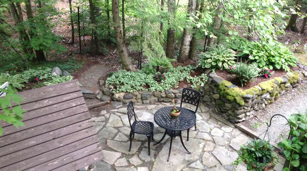 SANS VOISINS À L'ARRIÈRE, le terrain entièrement paysagé est un écrin de verdure avec ses arbres matures, arbustes, plate-bande de vivaces, son jardin et ses espaces extérieurs aménagés pour la détente : terrasse, patio, rond de feu, four à pain et en prime le murmure du ruisseau.